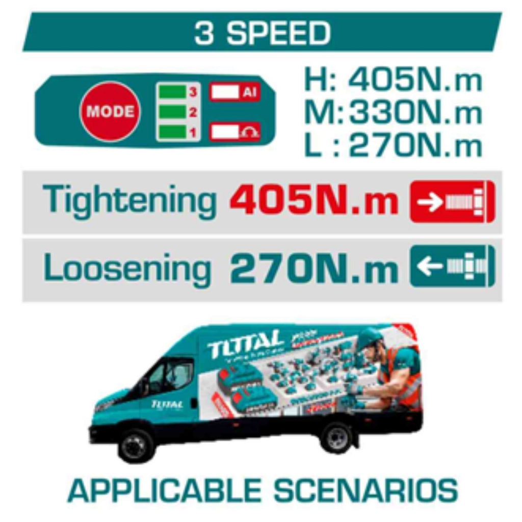 | Características | Motor sin escobillas. Torque de apriete: 405 Nm Luz de trabajo LED integrada |