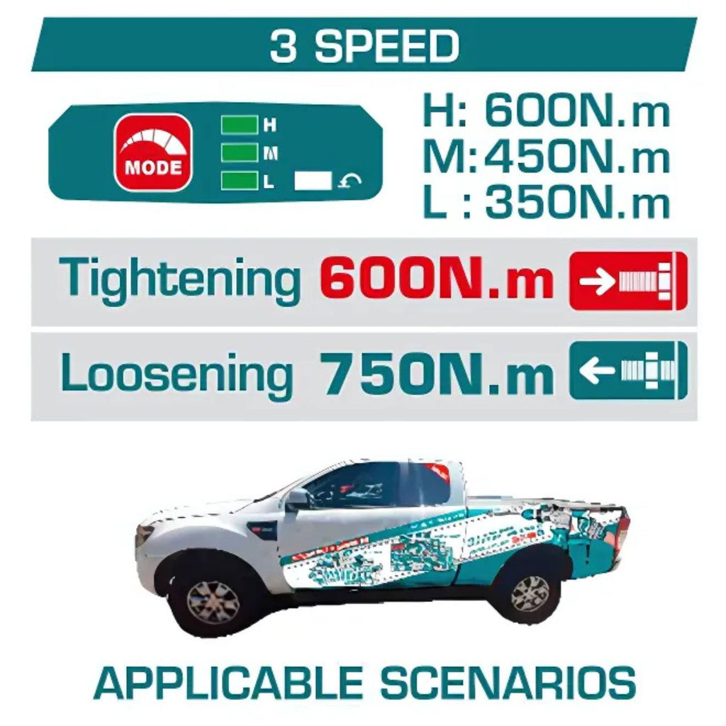 | ¿Dónde usarlo? | Llave Impacto Dado Cuadrado 42V 1/2" Motor Sin Escobillas. |