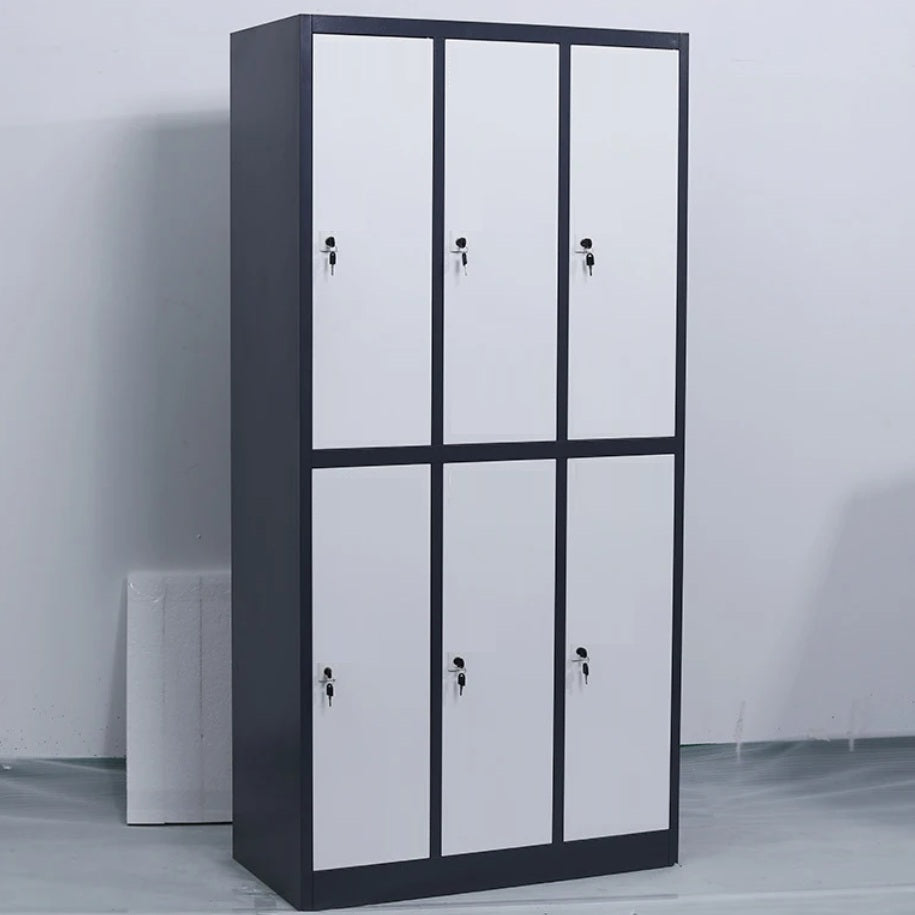 Locker Casilleros metálicos de 6 casillas 2 niveles con barra de ropa repisa y cerradura de llave 1850x900x450mm