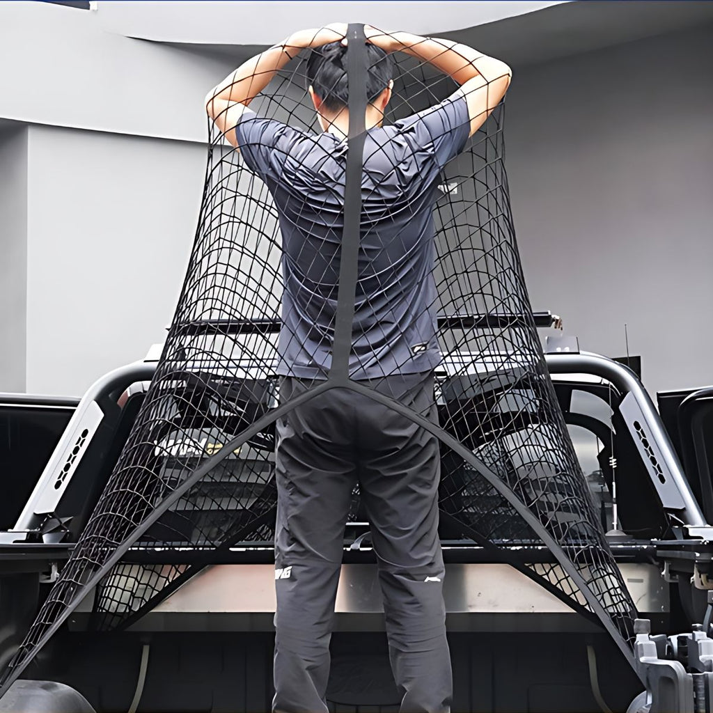 - Fabricada con malla elástica de alta resistencia y bordes reforzados para mayor durabilidad y seguridad en carretera.