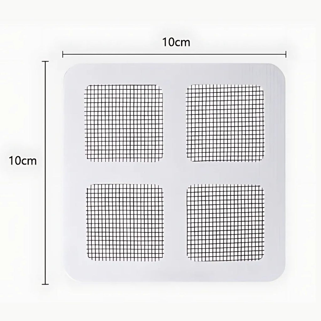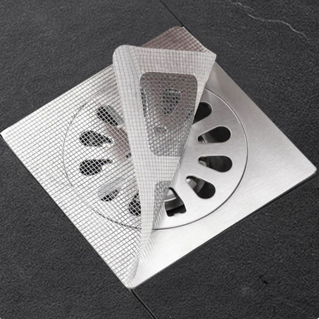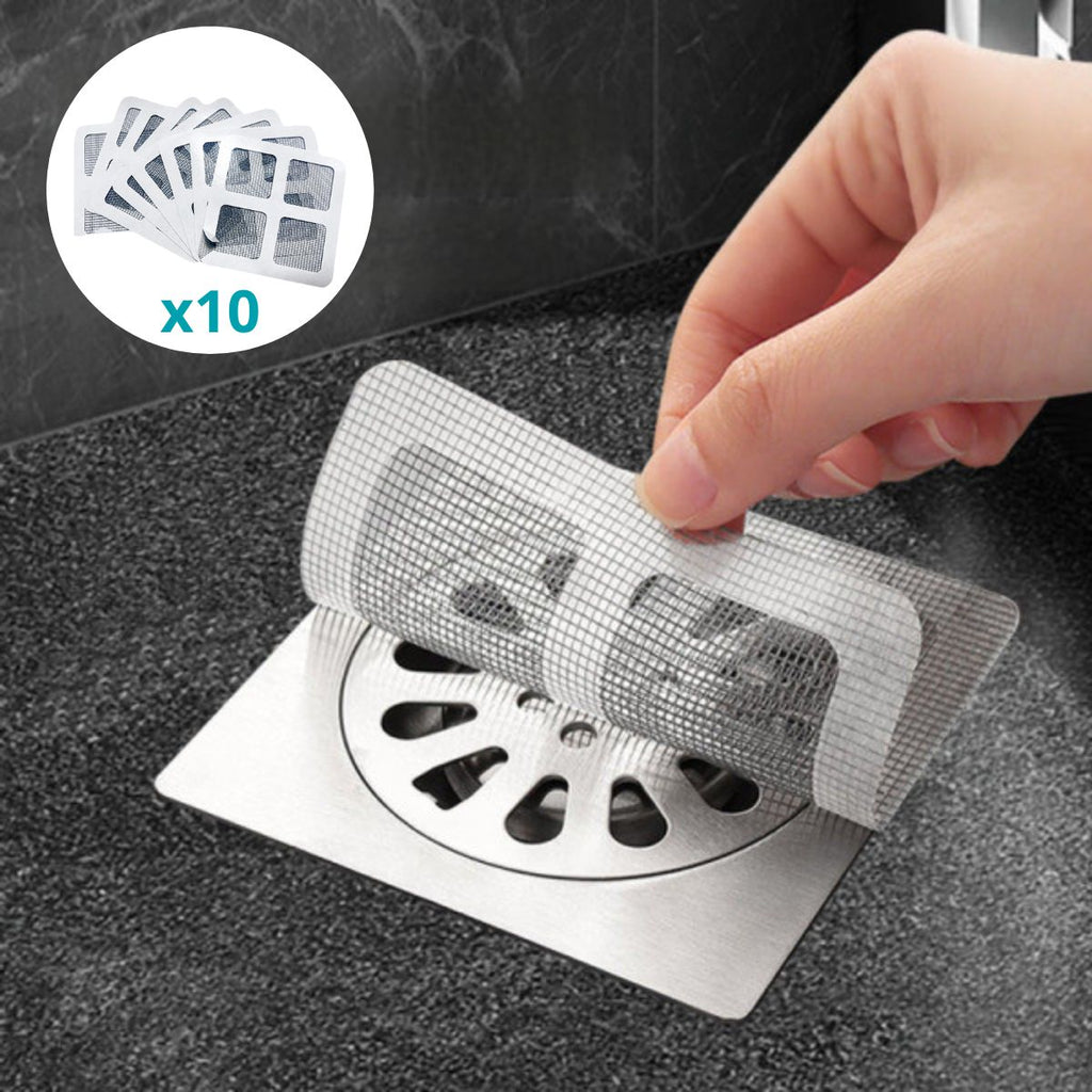 - Pack de 10 mallas protectoras autoadhesivas para desagües de piso, fregaderos o duchas.