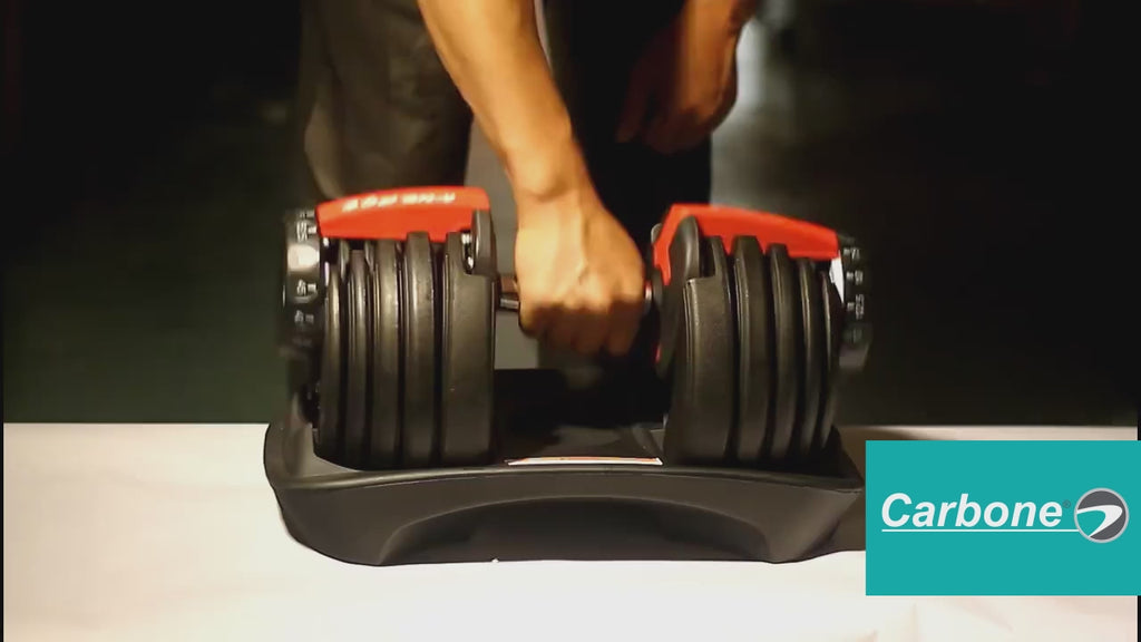 - Mancuerna ajustable con peso regulable de 2,5 a 24 kg, ideal para entrenamientos personalizados.