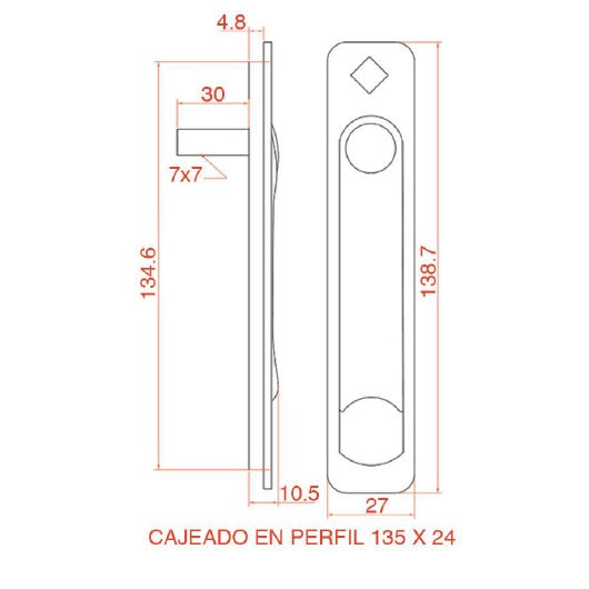 Manilla Embutida Operador Multipunto. Cuadrillo de 8X8. Acabado Pintado Blanco
