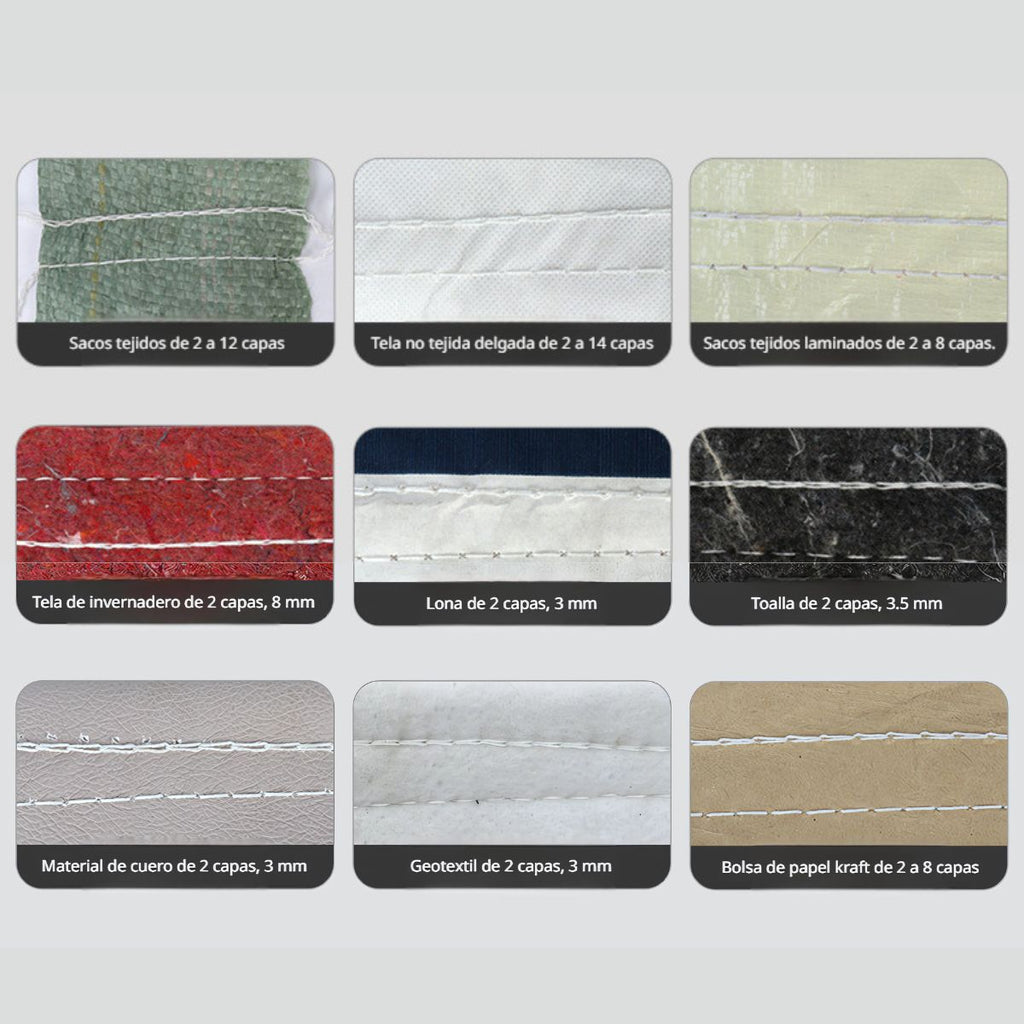 - Máquina portátil de alto rendimiento para el cerrado de sacos tejidos, papel kraft, geotextil, lona, cuero, toalla y más.