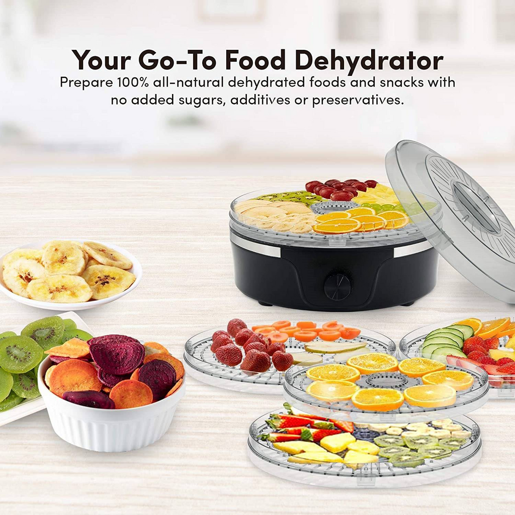 - Este deshidratador de alimentos está diseñado con 5 bandejas de secado de gran capacidad, que es suficiente para sostener la mayoría de los alimentos y crear un secado uniforme.