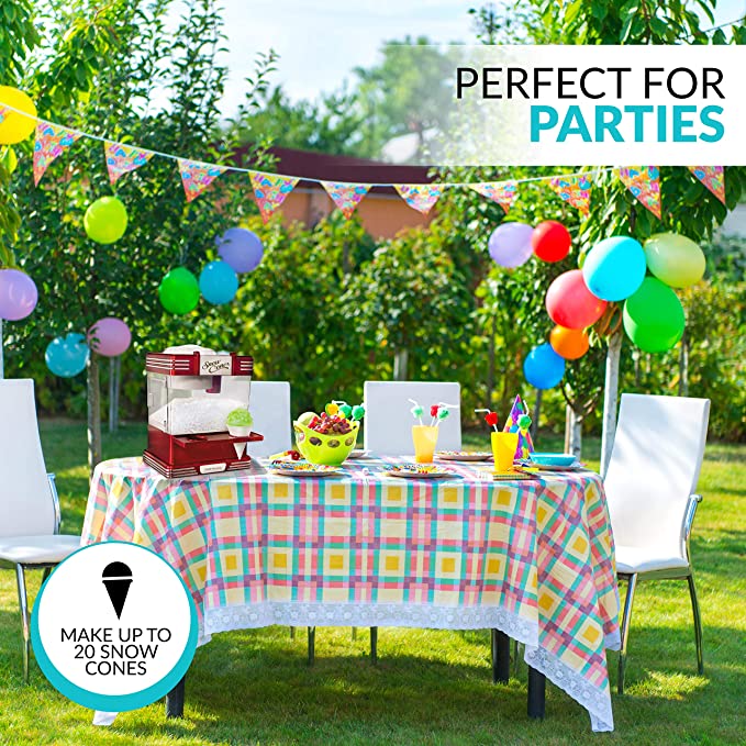 -Incluye 2 conos de plástico reutilizables (8 onzas), junto con una cuchara para el hielo para servir fácilmente los raspados.
