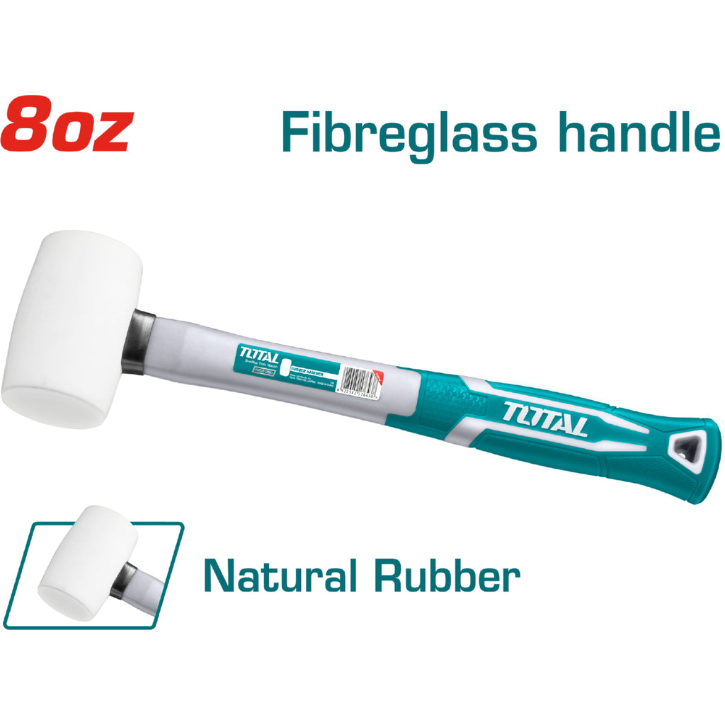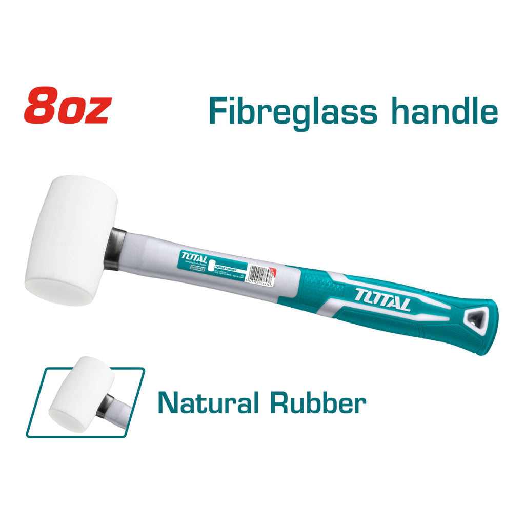 Martillo de goma 8 OZ/220g 45% goma natural blanca suave. Mango de fibra de vidrio