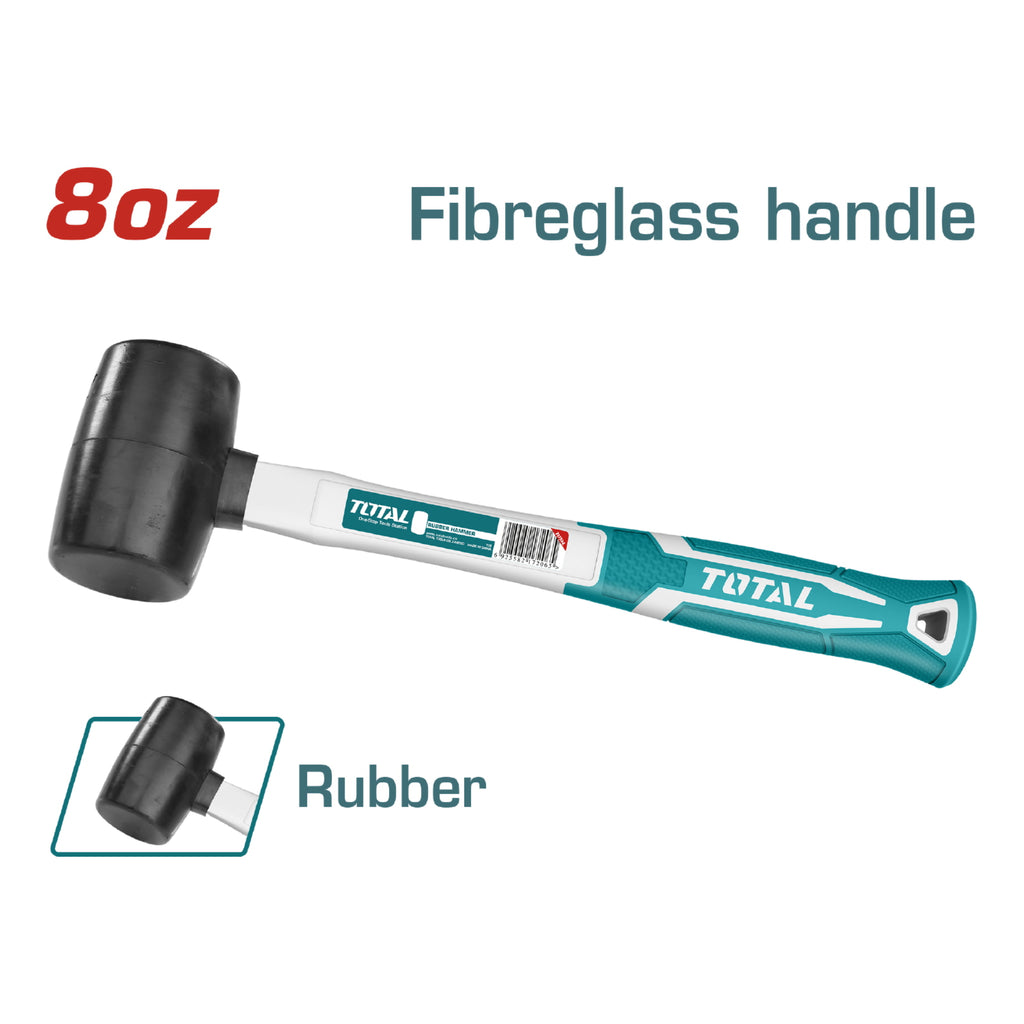 Martillo de goma 8oz/220g. Mango de fibra de vidrio.