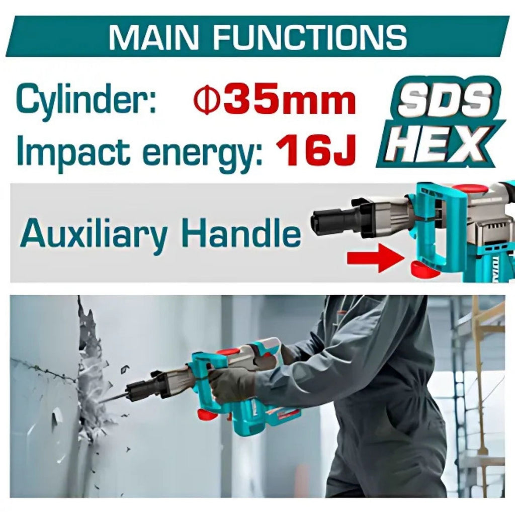 | Características | Sistema de portabrocas SDS HEX Motor sin escobillas.Tasa de impacto: 0-3200 bpm |