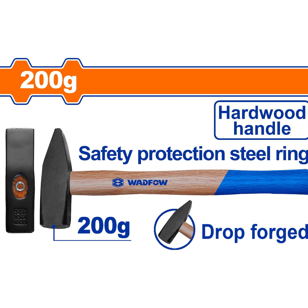 | Características | Martillo Forjado. Tratamiento térmico. Acero al carbono # 45. Mango de Madera. |