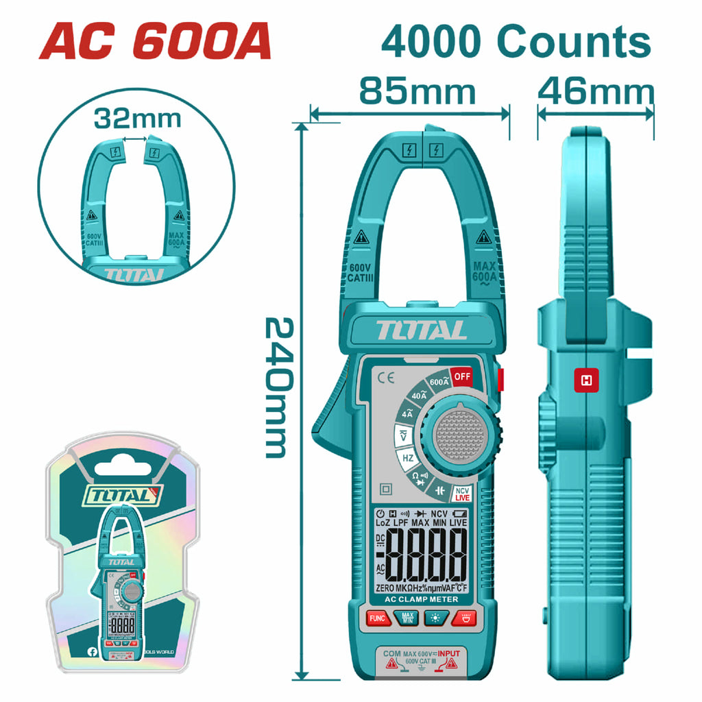 - Corriente AC: 4.000A/40.00A/600.0A.