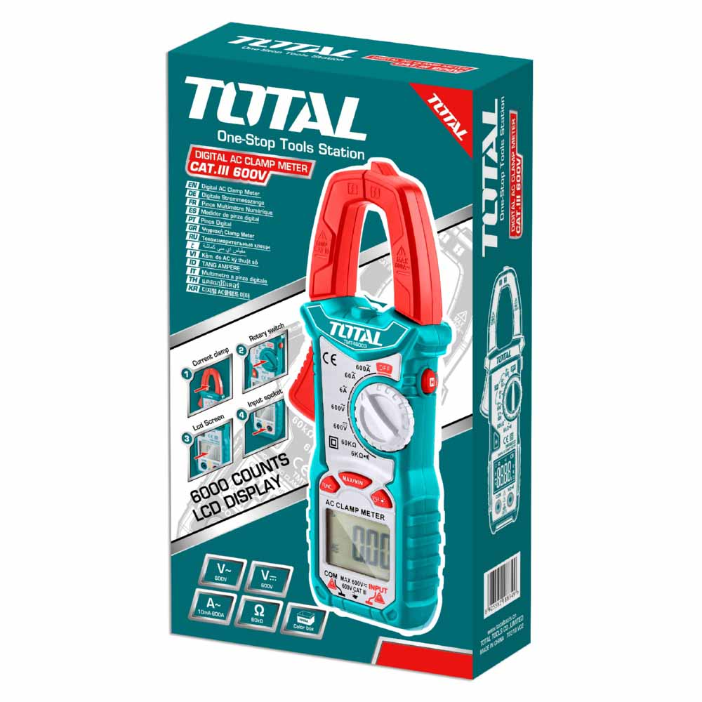 Medidor de Abrazadera Pinza amperimétrica 6000 Counts. Con retención de datos. Corriente CA: 6A / 60A / 600A / ± (2.5% +8). Voltaje de CA: 0.1 ~ 600V ± (0.8% +5). Voltaje DC: 0.1 ~ 600V ± (0.5% +3). Resistencia: 0 ~ 60kΩ ± (0.8% +3) Con función de retroiluminación. Con función de luz de flash Con función de indicación de batería más baja.