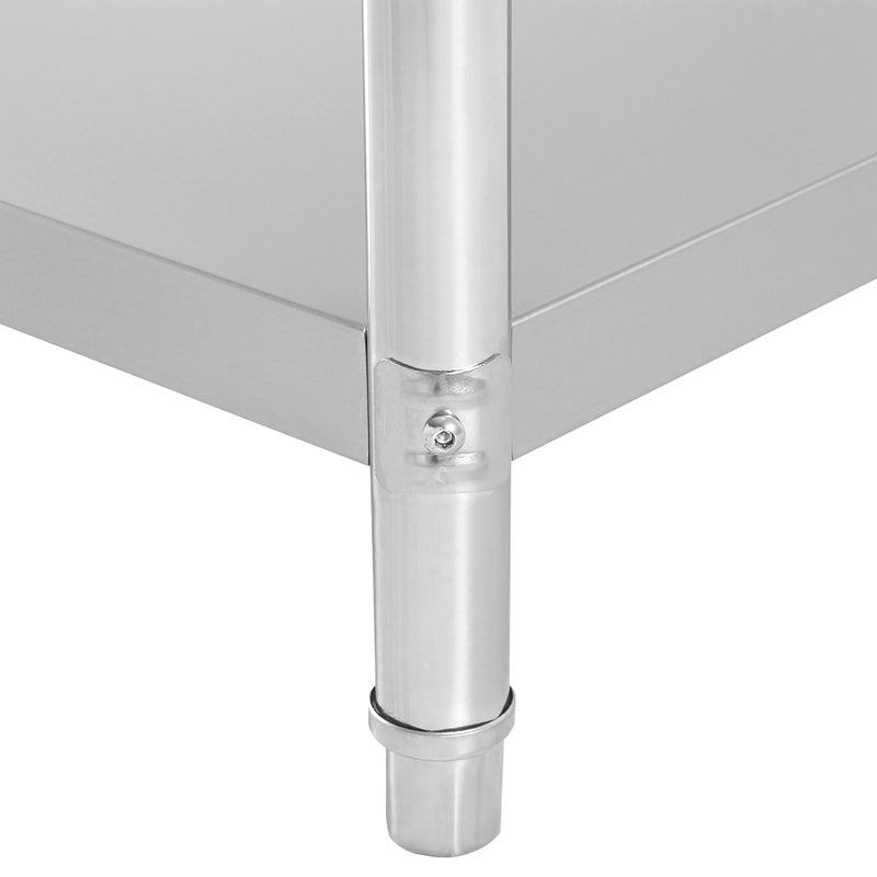 La mesa de trabajo de acero inoxidable adopta una estructura de acero inoxidable y es un excelente complemento para restaurantes, cafés o panadería. Con su gran capacidad de peso, superficie fácil de limpiar y diseño funcional general. Muy adecuado para extender la masa o cortar frutas y verduras.