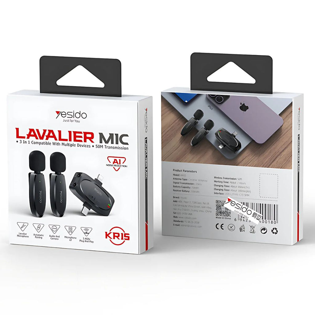 Micrófono Inalámbrico Lavalier Doble Conexión USB-C y Lightning. 50M de Alcance. Grabación Profesional para Video y Streaming.