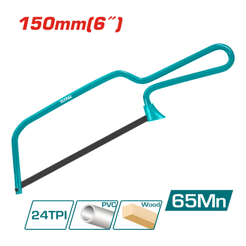 Mini Segueta Industrial para Metal de 150mm/6'''' para trabajo pesado. Incluye 1 Hoja de Sierra. Marco con Mango cómodo de aluminio 800Y. Tensión ajustable. Mecanismo de cambio de cuchilla de liberación rápida.