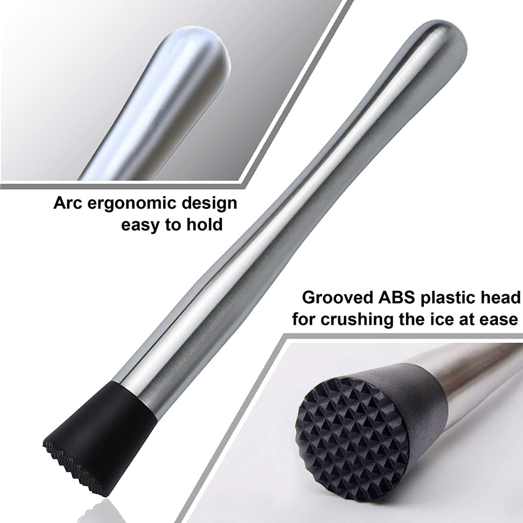 Alta calidad y seguro, el mortero de cóctel está fabricado de acero inoxidable duradero y de grado alimenticio con cabeza de silicón libre de BPA.