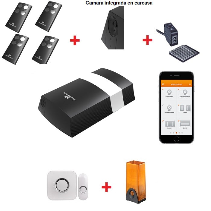 Motor Seccional riel T garage AMOS1200N. Incluye 4 controles, fotocelda reflejo 7mts, Lampara, cadena , timbre inalambrico (avisa por app) App para 10 usu. y controles hasta 200 usuarios.