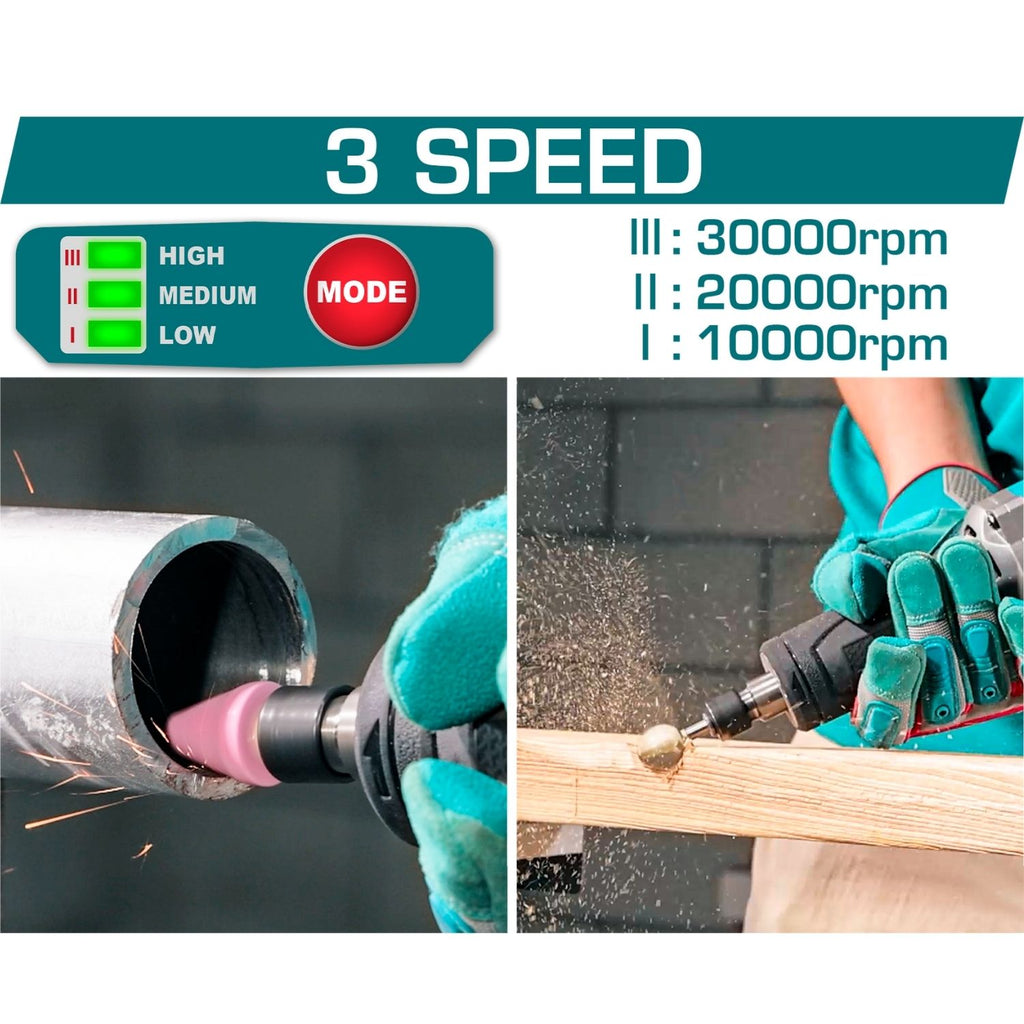 | Características | Boquilla: 1/4" Incluye:5 puntas montadas. Velocidad sin carga:10,000 / 20,000 / 30,000 rpm |