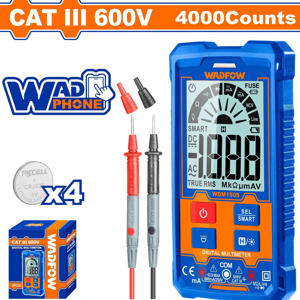 Multímetro Digital 2000 Dígitos. CATIII 600V. Función Inteligente. Rango Automático.