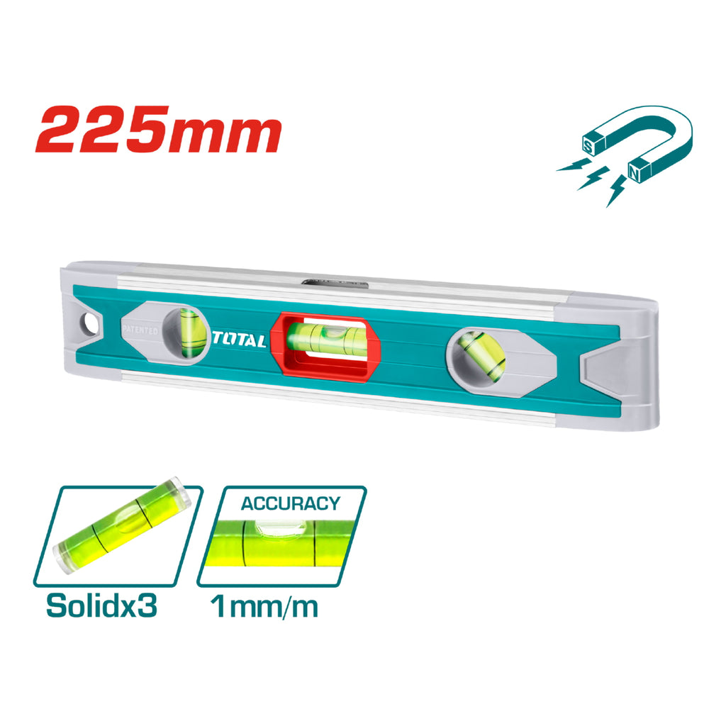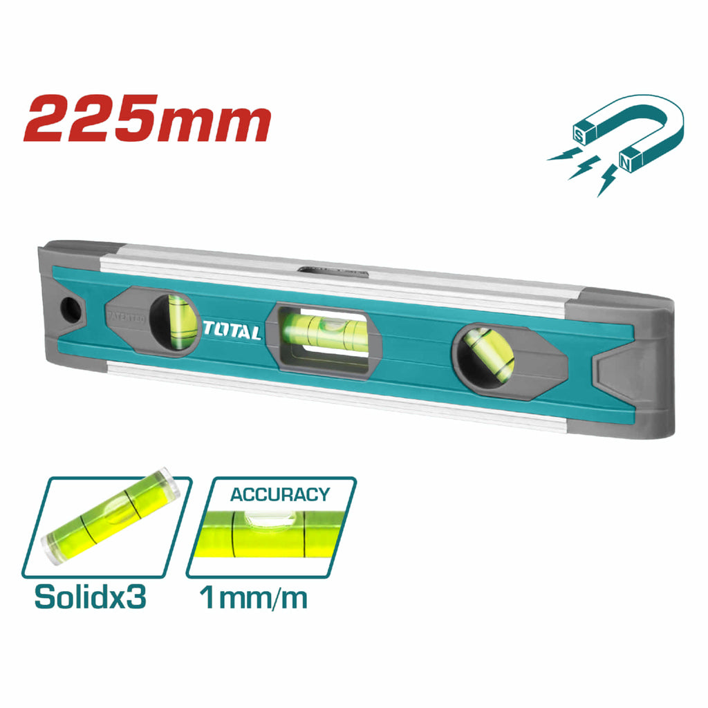 Nivel de burbuja 225mm aluminio y ABS. Con iman. Alta calidad indestructible.