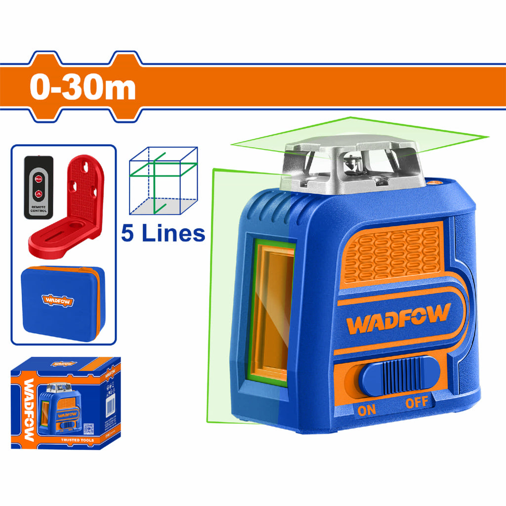 | Características | Nivel láser autonivelante verde, alcance de 30 m, 1 línea horizontal de 360° y 1 vertical, precisión ±2 mm a 5 m, autonivelación ≤4°, incluye control remoto y soporte magnético. |