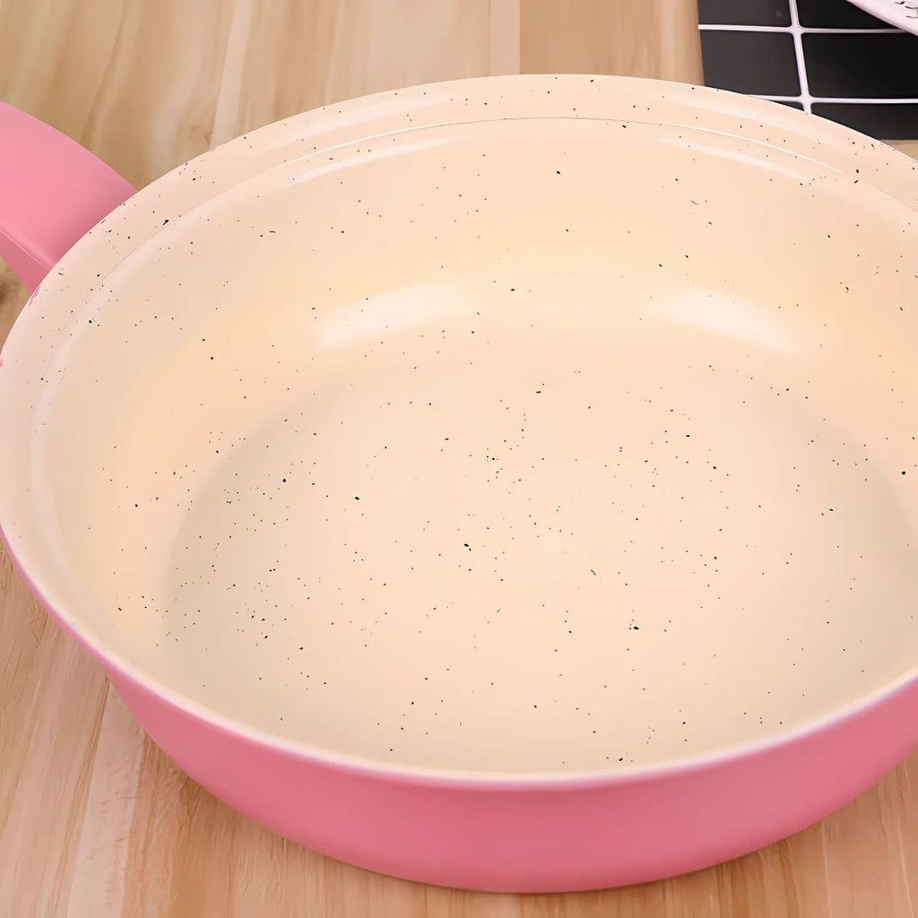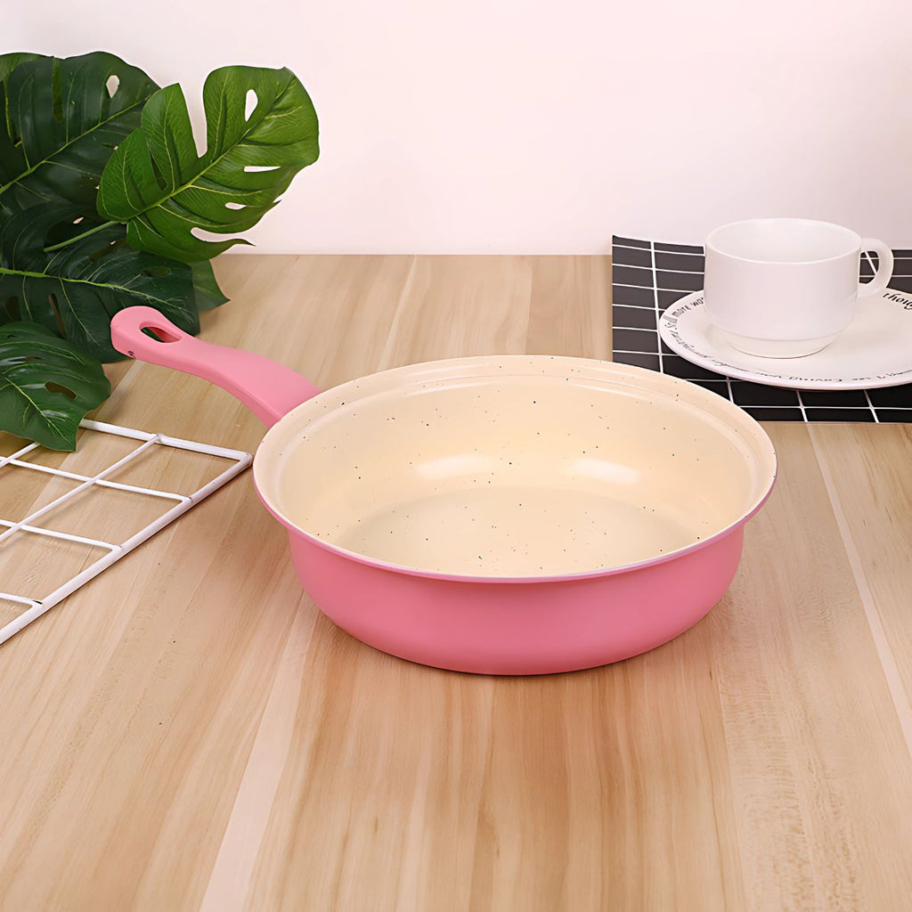 - Diseño moderno en color rosado con interior cerámico crema moteado, ideal para cocinas con estilo.
