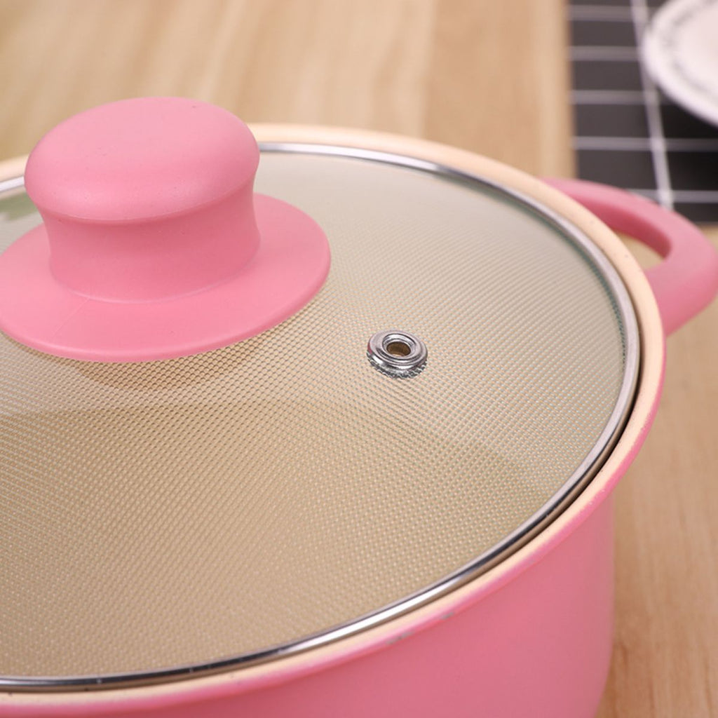 Ollas Antiadherentes de Cerámica (Set de 13 Piezas) Con Tapas de Vidrio y Utensilios de Cocina. Juego de ollas y sartenes. Color rosado.
