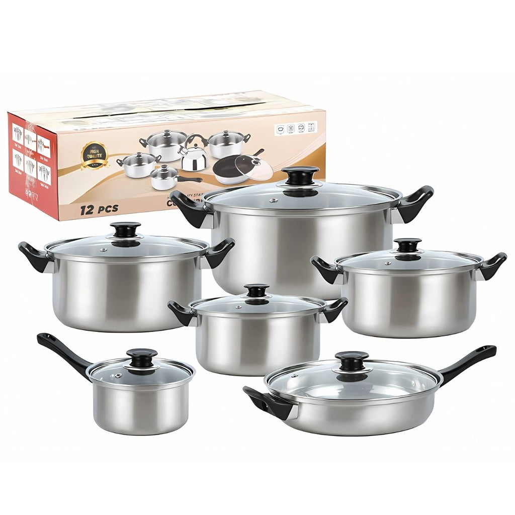 Ollas y Sartén De acero inoxidable. Set Juego de 12 piezas. 100% libre de teflón.