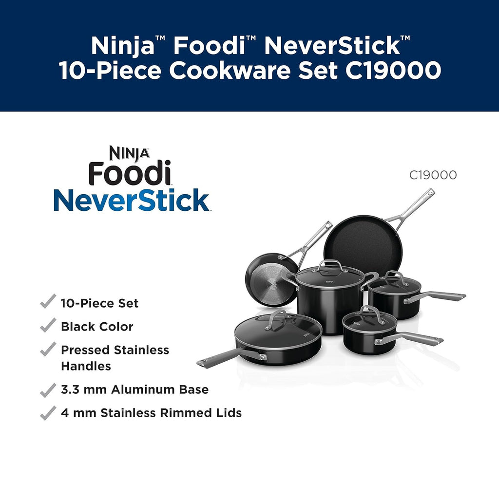 Ollas y sartenes Ninja Neverstick Essential de 10 Piezas. Juego de ollas y sartenes C19000.
