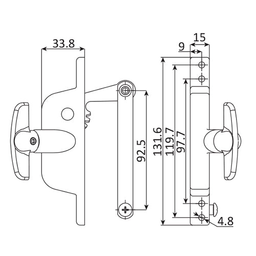 Operador de Ventana de Celosia. Incluye barra operadora de 92.50 mm. Extremo con tornillo. Acabado Blanco.