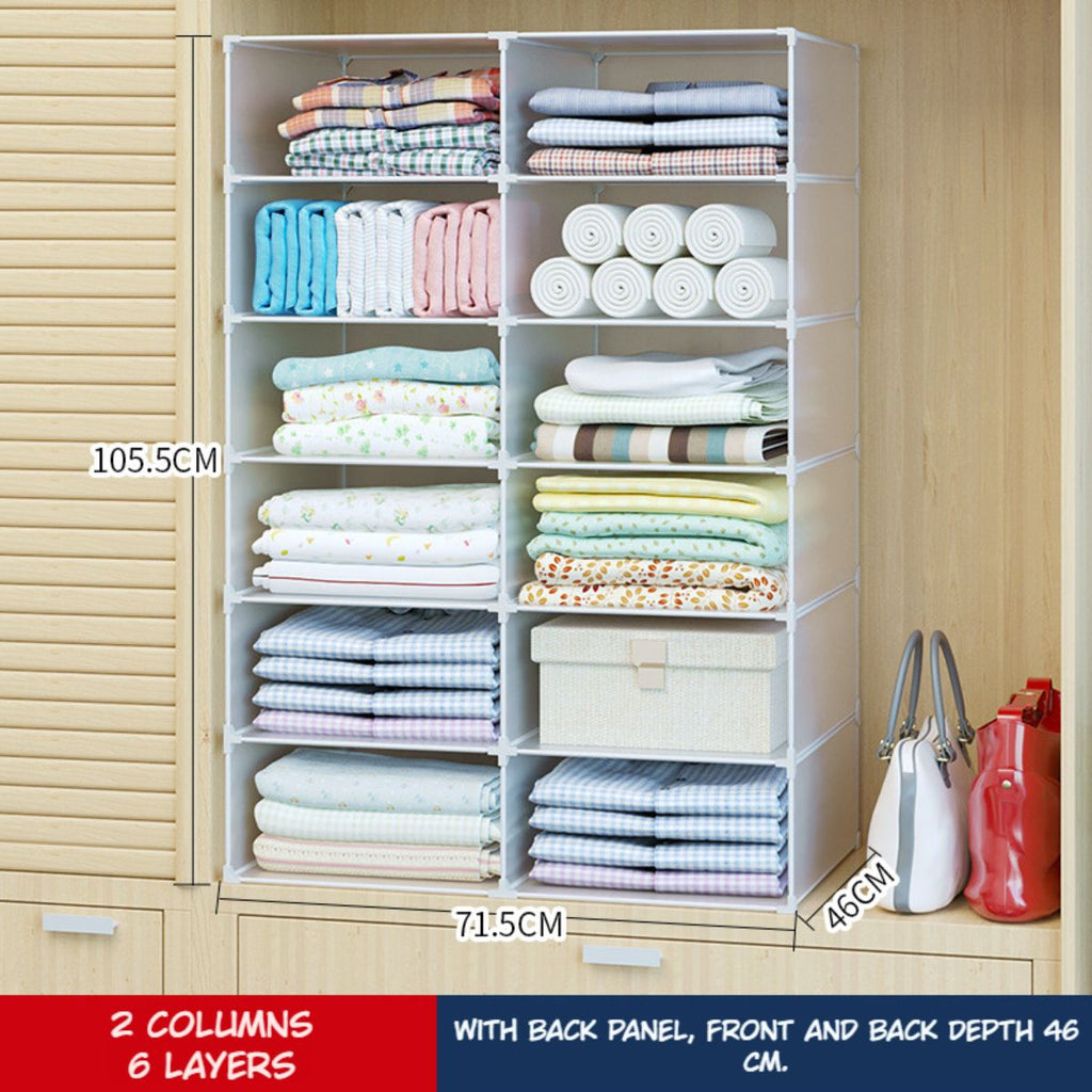 Organizador de Closet Baño Toallas. Estantes Apilables para Armario Lavandería. 2 columnas 6 capas. 73x108x47cm.