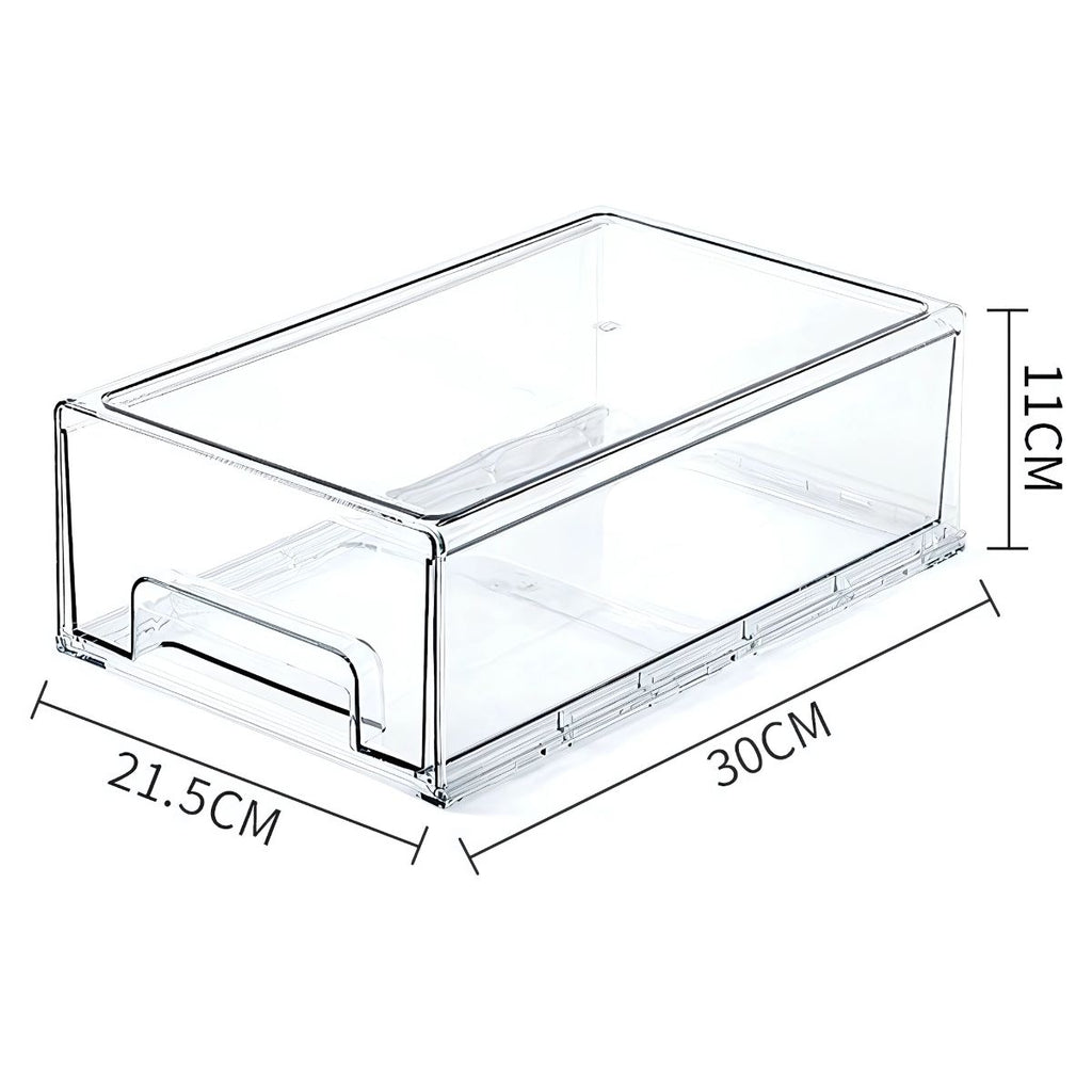 Organizador de Nevera Transparente Grande. Gaveta de Almacenamiento para Alimentos (30 x 21.5 x 11 cm).