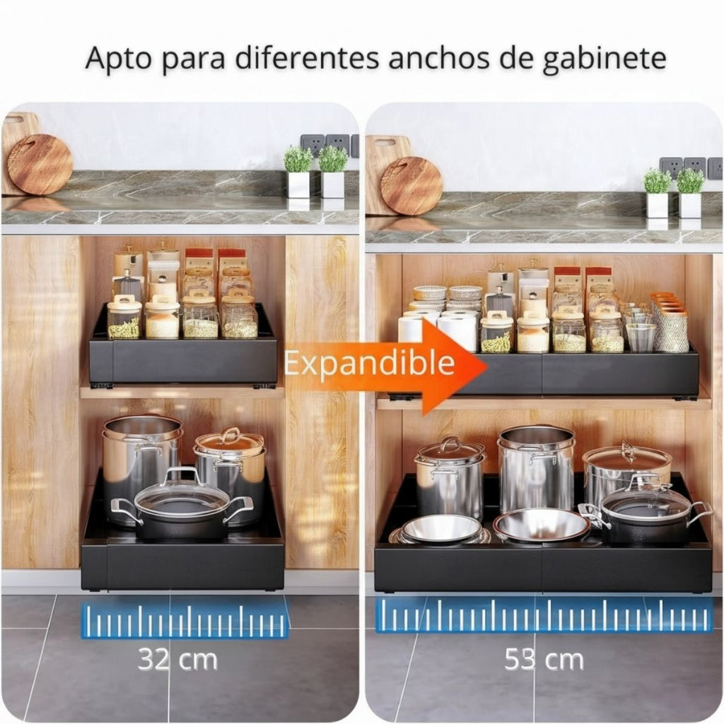 Organizador De Cocina Expandible Y Extraíble De Acero Para Latas, Platos Y Despensa. 32-53cmx42.5cm. Color Negro. 1 Unidad