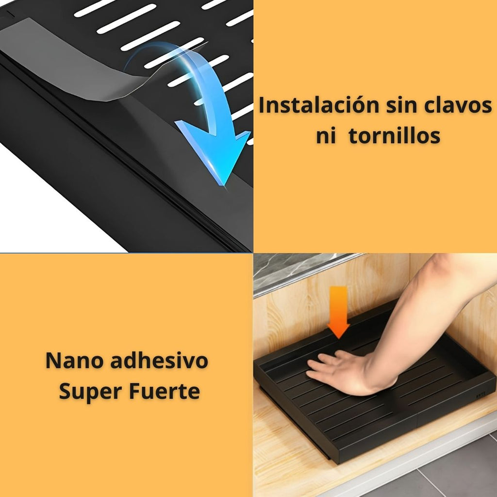 - Instalación sin clavos ni tornillos gracias a nano adhesivo fuerte, evitando dañar los gabinetes.