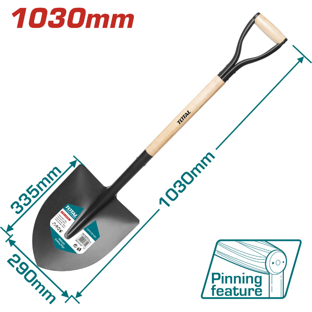 Pala de punta con mango de madera 1030mm. Pala 270mm x 330 mm mango de madera