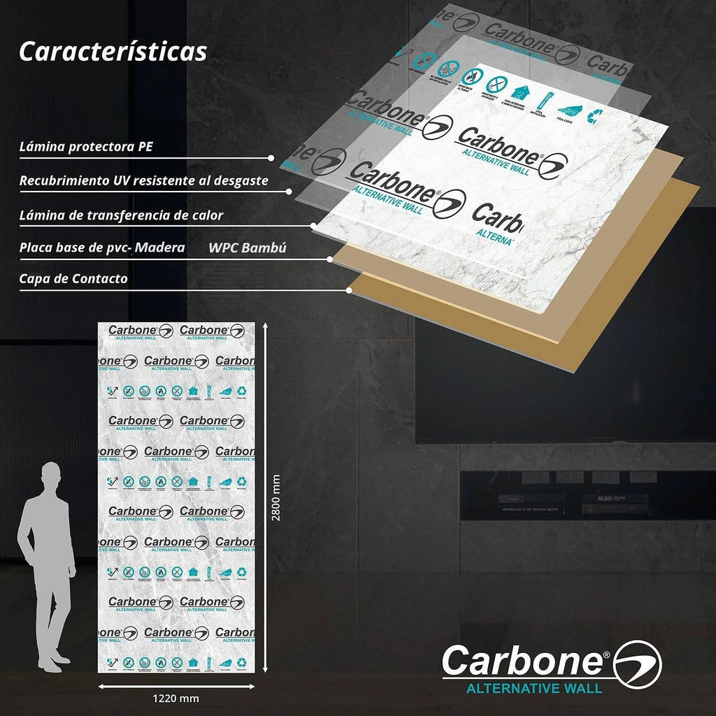 No utilizar agentes ácidos como silicón acético o líquidos de limpieza muy fuertes como el thiner, alcohol industrial etc, al momento de instalar y limpiar las superficies de estos paneles. Se recomienda limpiar con agua y sellar entre juntas con silicón neutro. - Compuesto por Mármol, piedra y Pvc, Liviano