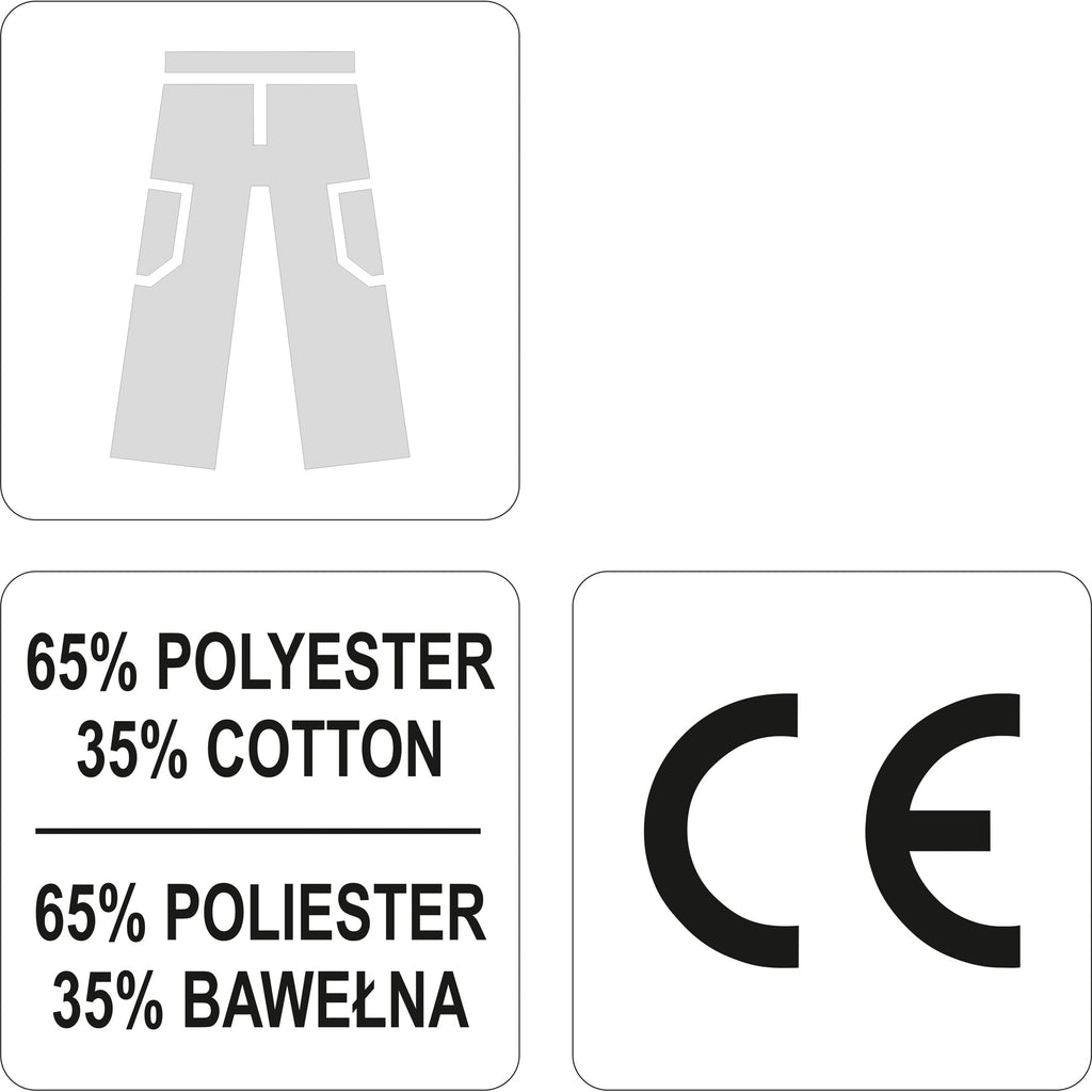 Material: 35% ALGODÓN, 65% POLIÉSTER; 267 G/M2;costuras adicionales; bolsillos multifuncionales; bolsillo para smartphone; áreas fortalecidas del codo y la rodilla (oxford); triple puntada.