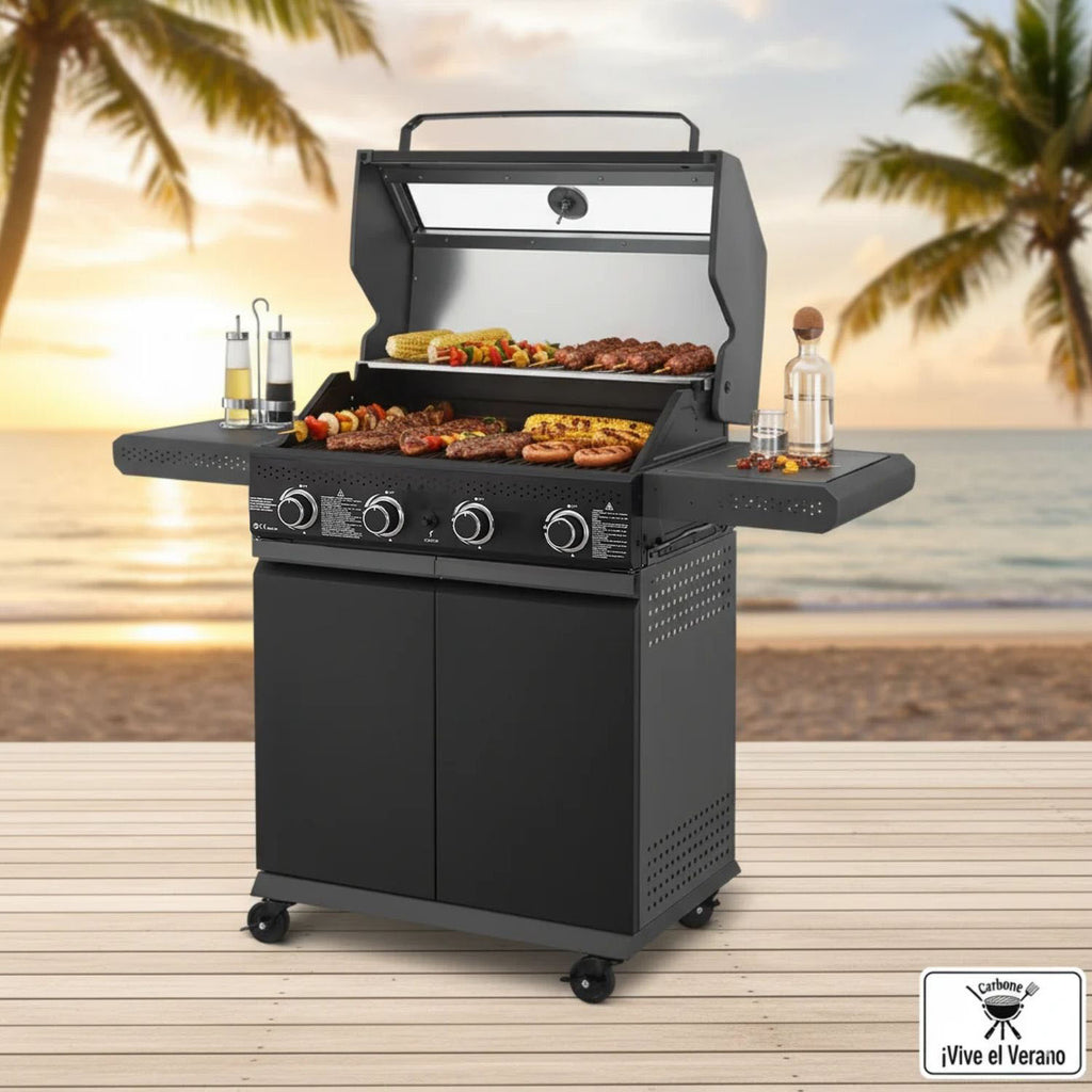 Parrilla BBQ de Gas con Ventana de Vidrio 122x45x116cm Hecha en Hierro con 4Quemadores