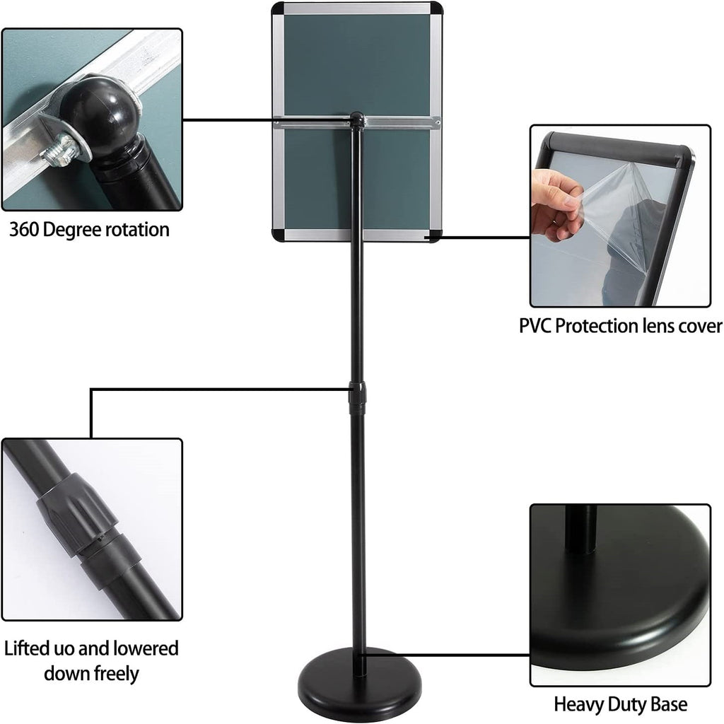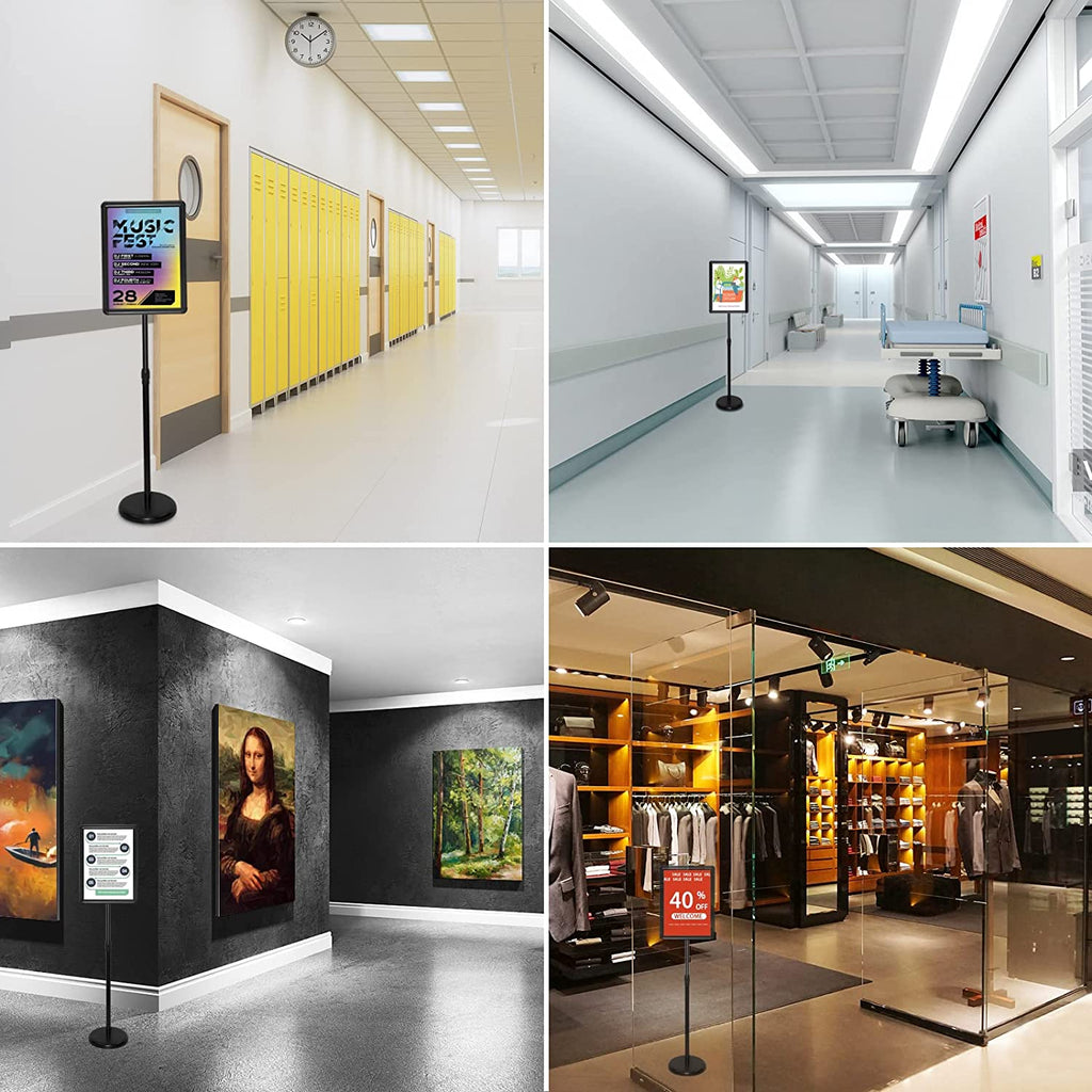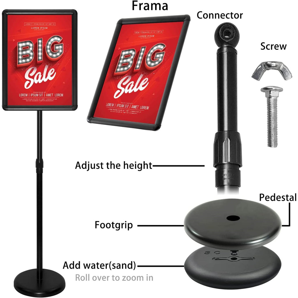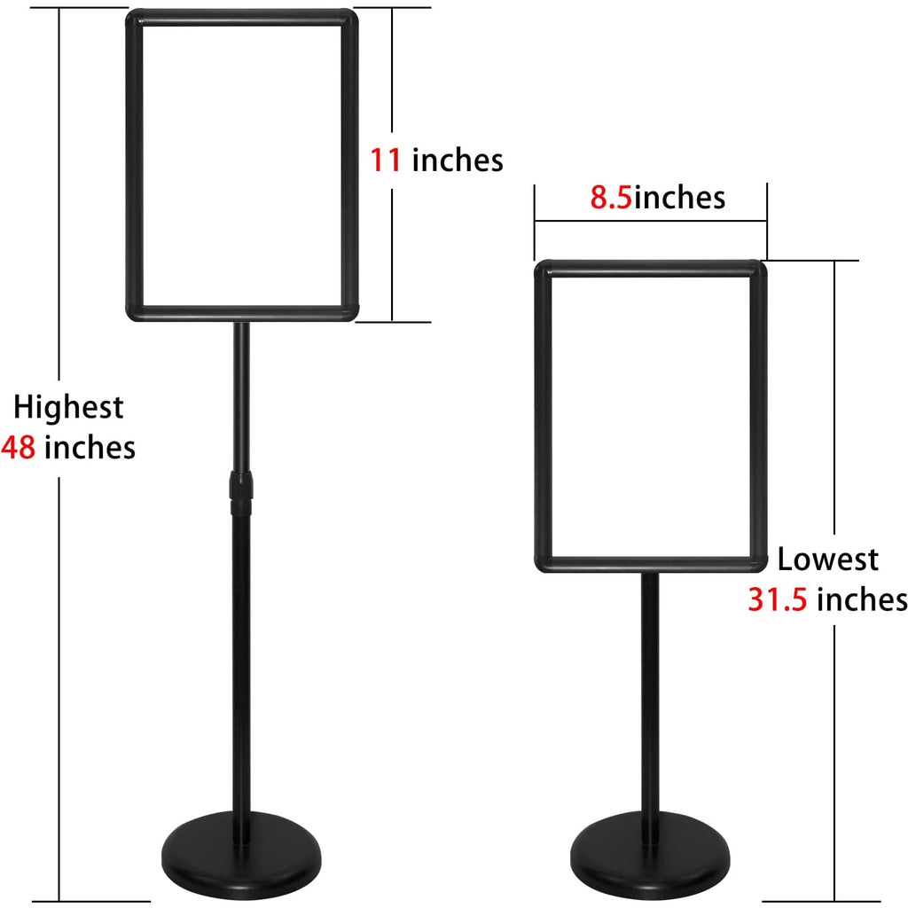 Letrero de piso, aviso de pedestal de suelo 8.5x11 pulgadas, altura ajustable para anuncios, color negro