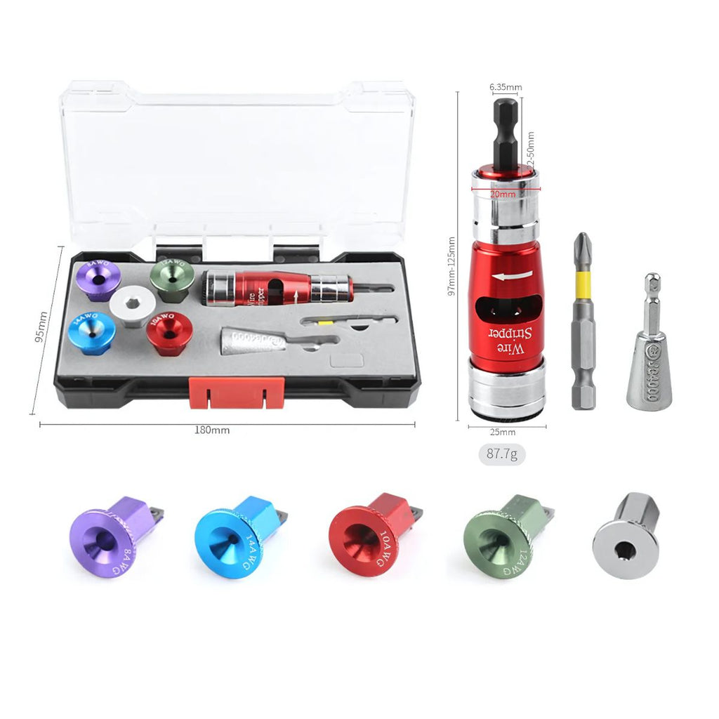 Pelacables eléctrico para taladro. Torsión de alambres. Para pelar cables electricos. Set de 8 piezas (8, 14, 10, 12 AWG) Para electricista.