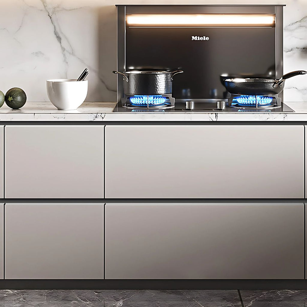 - Sistema de Apertura Oculta: Permite abrir cajones o puertas inferiores de forma ergonómica sin necesidad de manijas visibles.