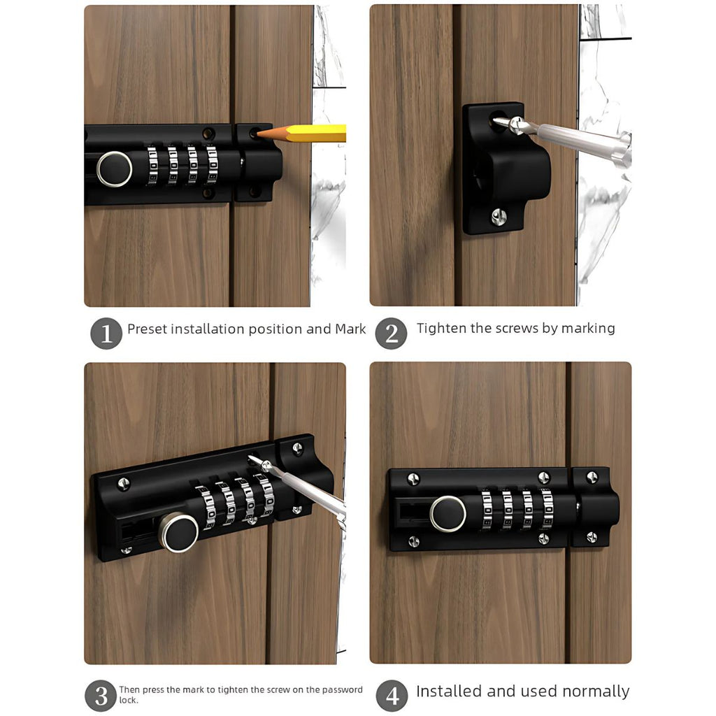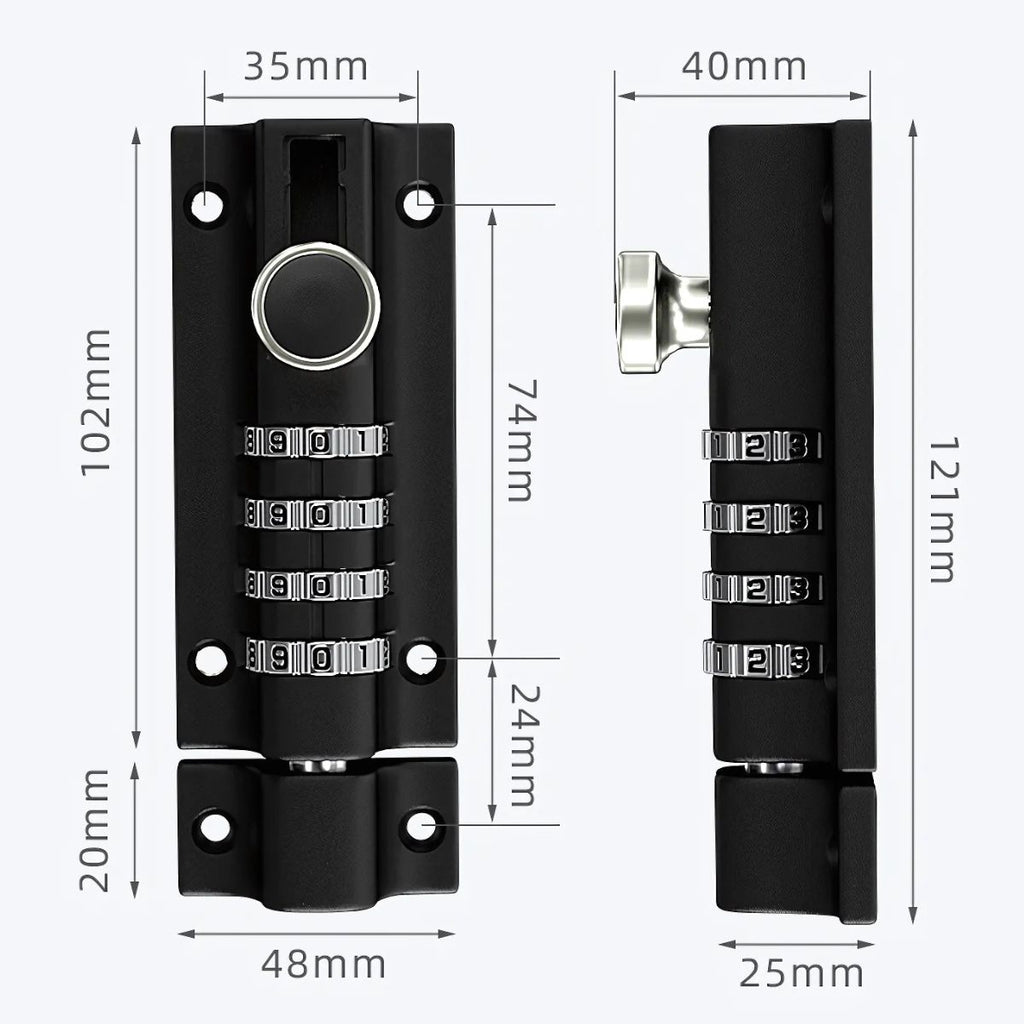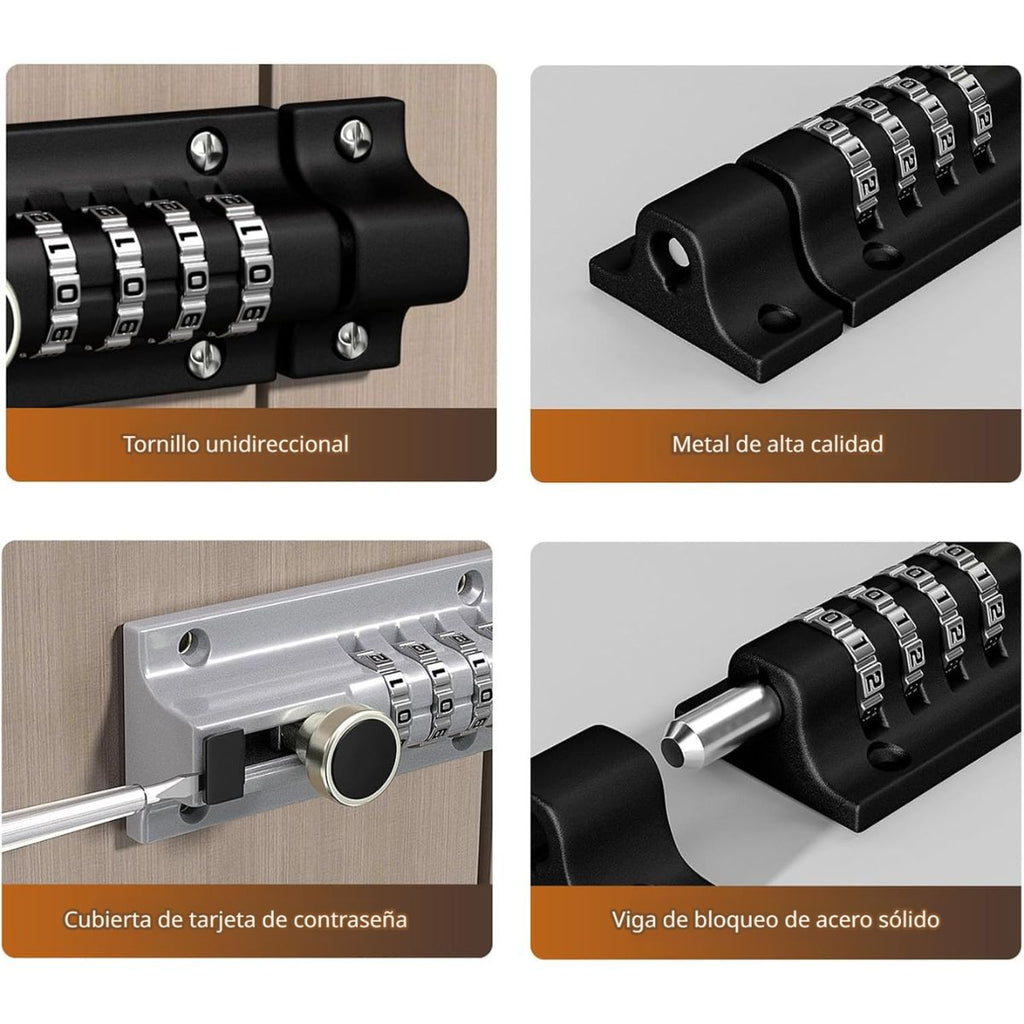Pestillo de Seguridad Reforzado. Cerradura con Código de 4 Dígitos en Aleación de Zinc para Exterior e Interior.
