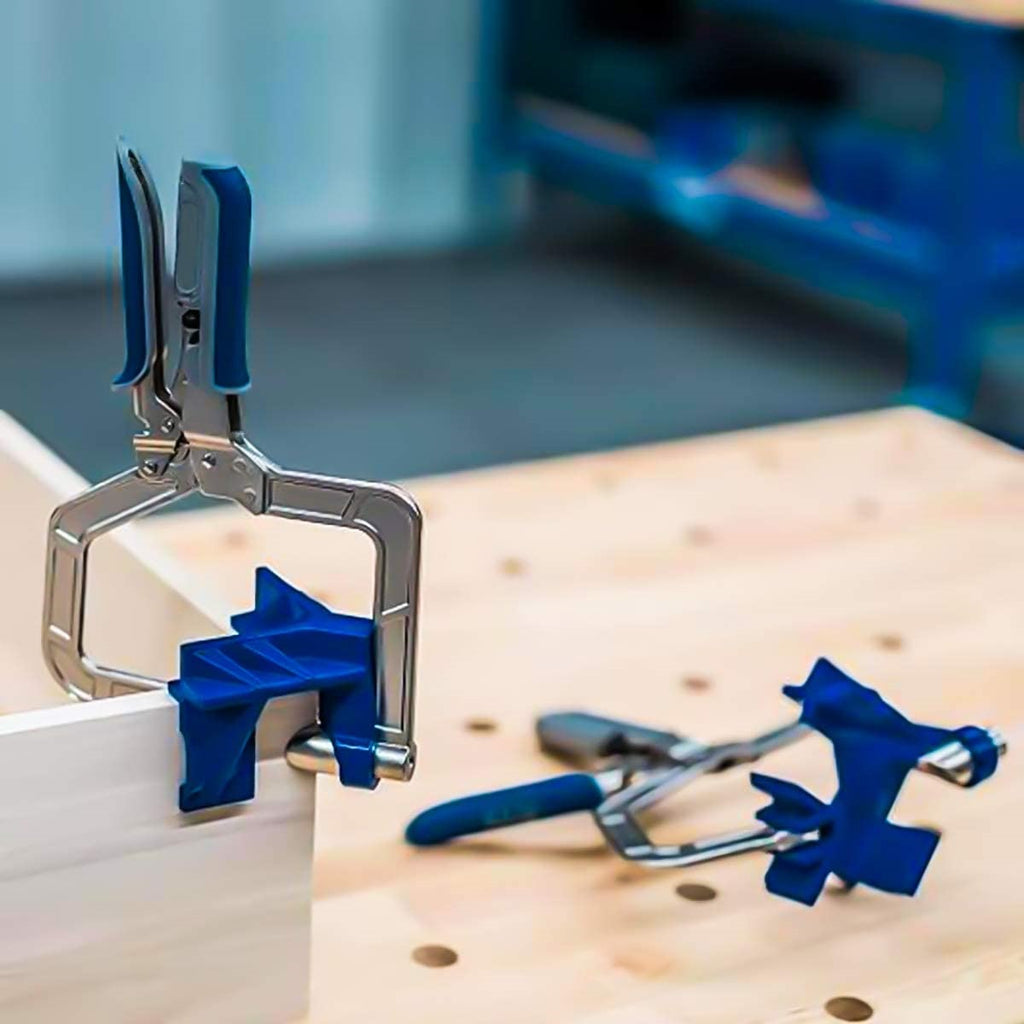 Esta abrazadera de esquina de 90° combina la función de una abrazadera de esquina con el medio de una abrazadera de marco facial y añade una innovadora tecnología de ajuste automático para crear la abrazadera definitiva para la construcción de la caja.