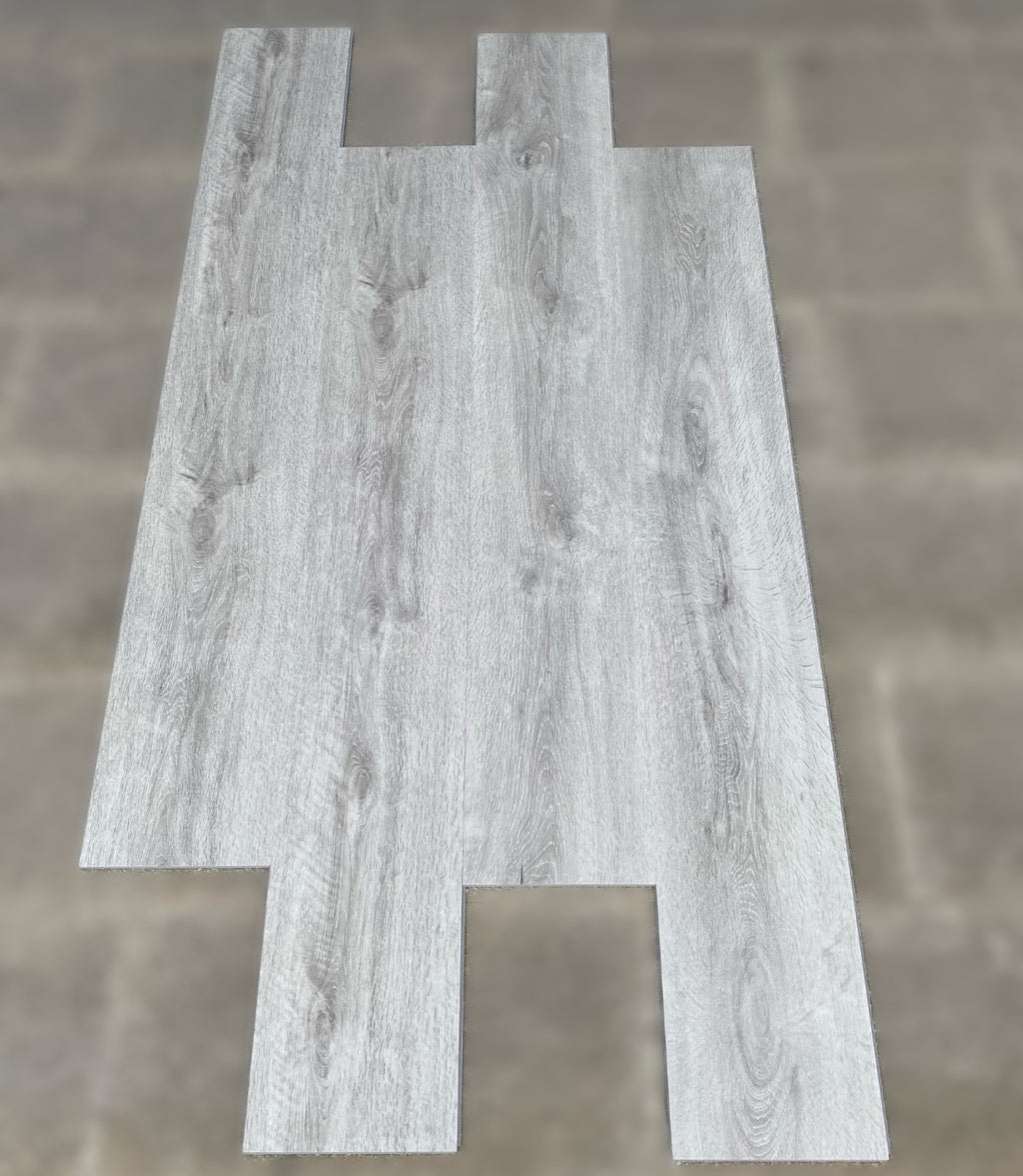 Piso SPC Madera Silver Grey Oak 1220 x 180 x 5.5 mm con IXPE 10 pc. pack 2.2 m2