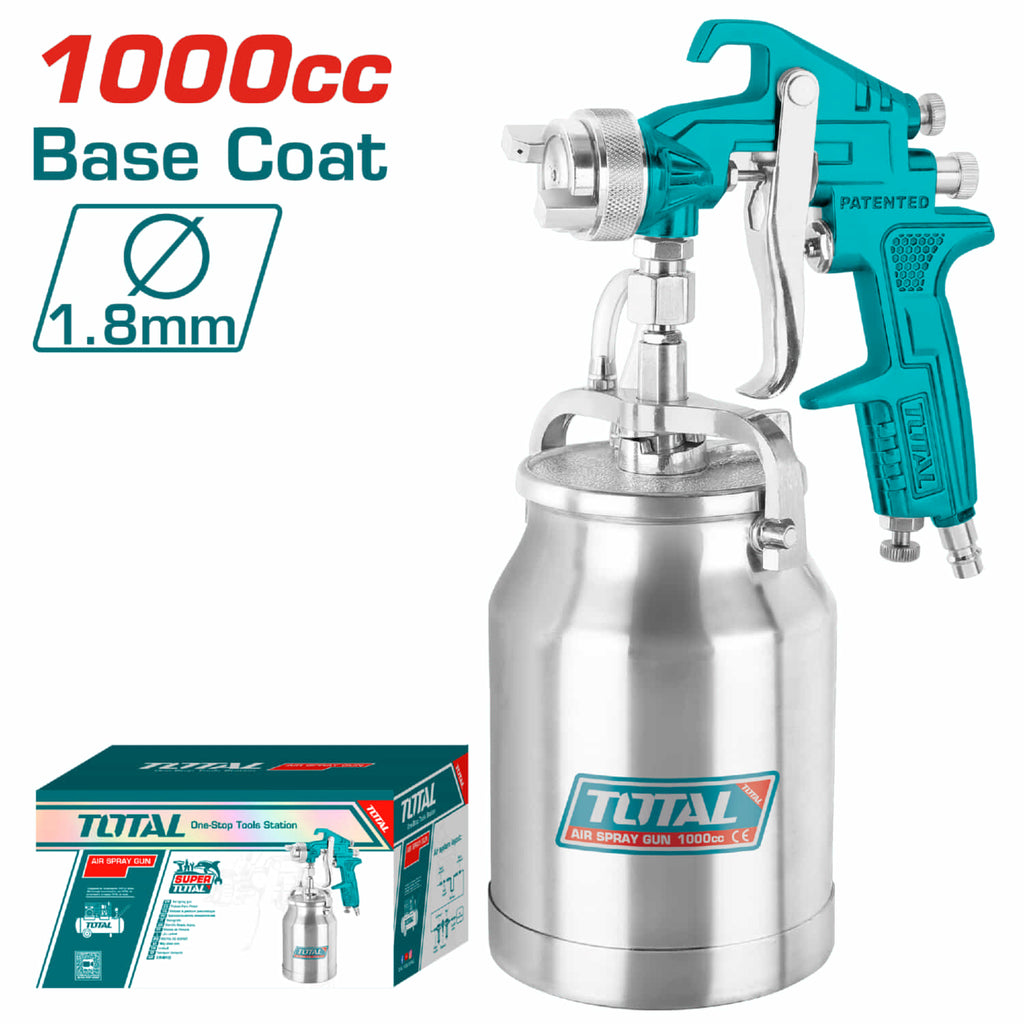 Pistola de pintura para compresor. Boq.1.8mm. Ancho de aplicacion 200-250mm. Capac.1000cc. Boq. opcionales 1.4-2.5mm