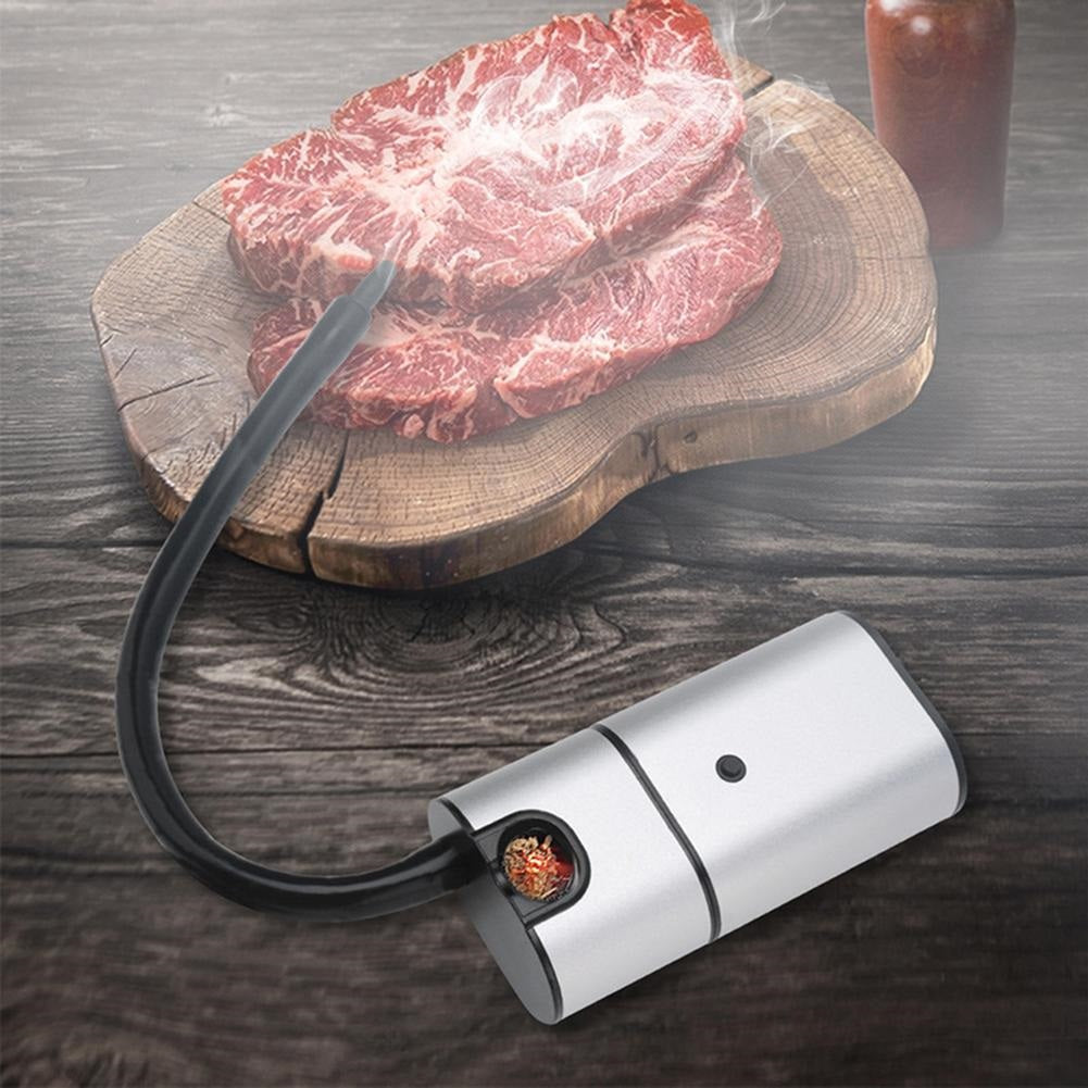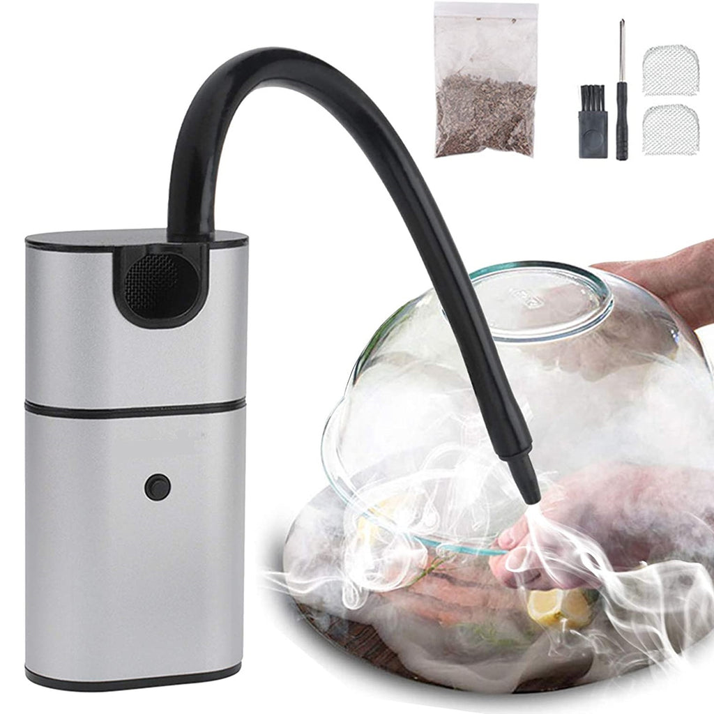 Ahumador portátil de alimentos y cocteles. La pistola ahumadora puede añadir rápidamente aromas y sabores ahumados a los alimentos. Incluye chips de madera para ahumar.