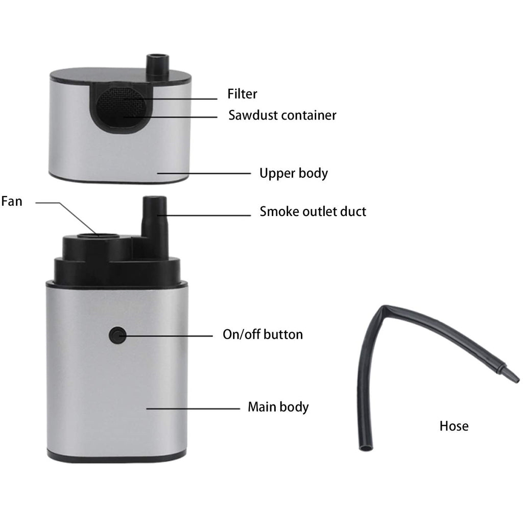 •Es práctico y portátil. Ahumador diseñado con un cuerpo de metal ligero pero resistente. Los ahumadores portátiles son compactos, duraderos y ahorran espacio.