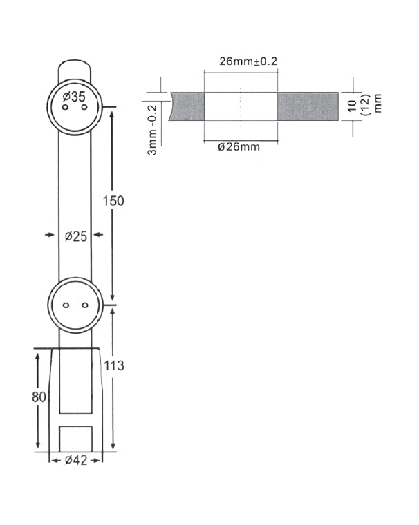 -El vidrio requiere 2 agujeros planos de 26 mm
