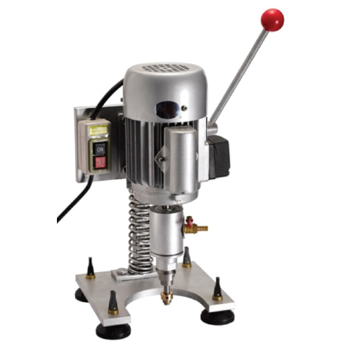 Taladro portátil, versátil para perforar cualquier tamaño de vidrio, con sus ventosas se ancla a la superficie para una perforación precisa y de fácil ejecución. Puede perforar con brocas desde 3 mm hasta 150 mm. Tiene válvula de control de suministro de refrigerante. Tiene una velocidad fija de 1400 rpm, con lo cual la única diferencia con el taladro de rpm variable es que el tiempo de perforación en brocas de menos de 20 mm será más largo. Herramienta indispensable que todo vidriero debe tener en su taller.