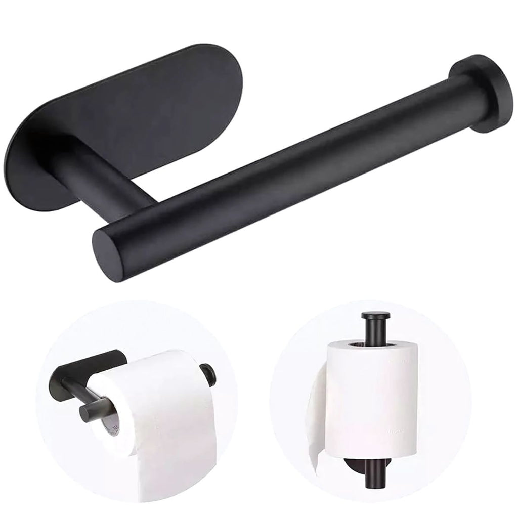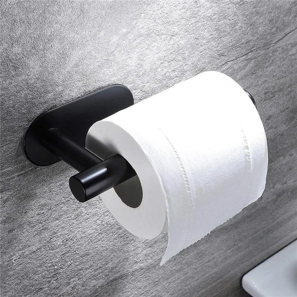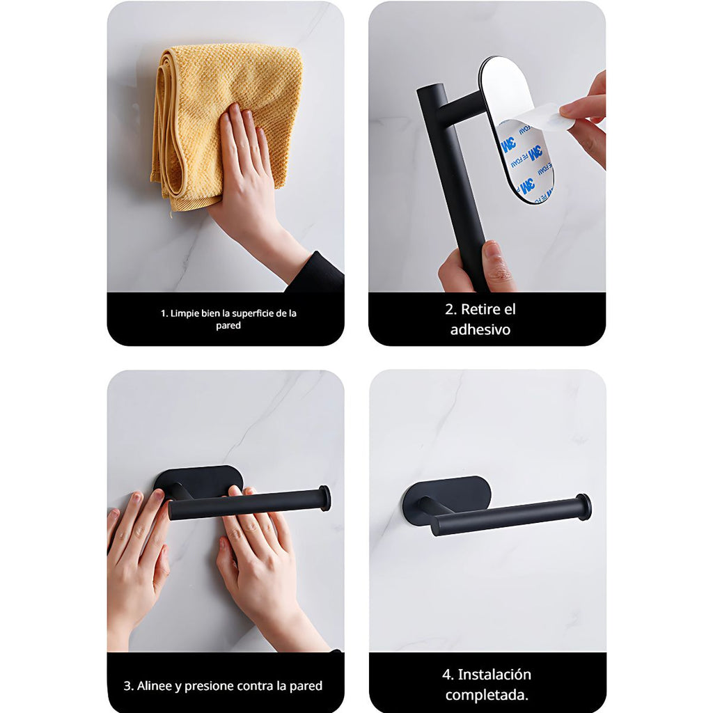 Portarrollos de Papel Higiénico en Acero Inoxidable. Montaje Autoadhesivo. Color negro.